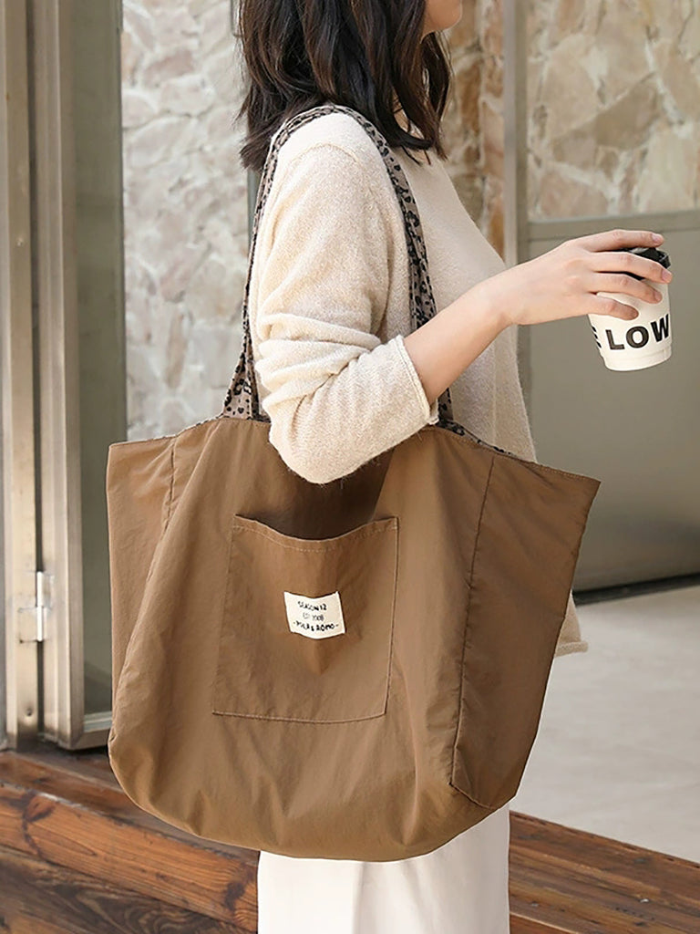 Women Vintage Leopard Print Dual-side Shoulder Bag