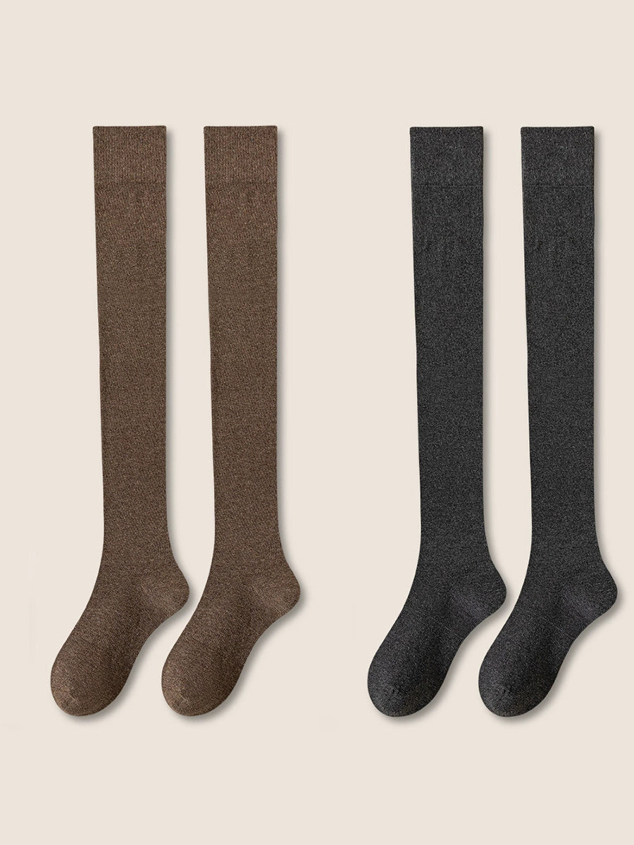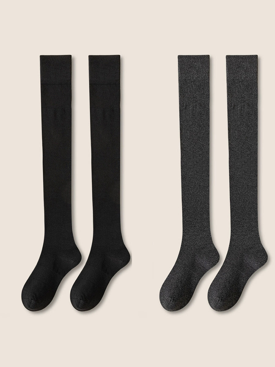 2 Pairs Women Artsy Pure Color Long Socks