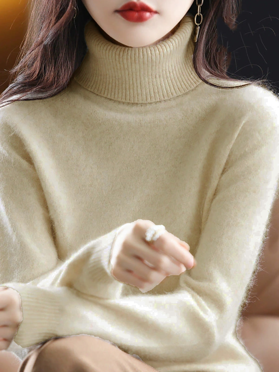 Women Autumn Casual Knitted Wool Turtleneck Sweater
