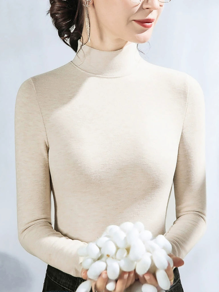 Women Autumn Casual Pure Color Half-Turtleneck Sweater