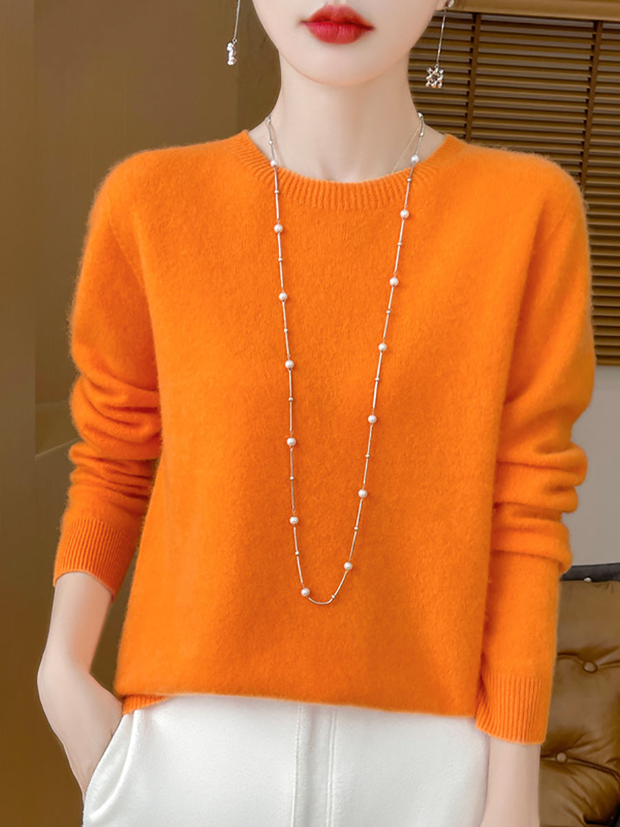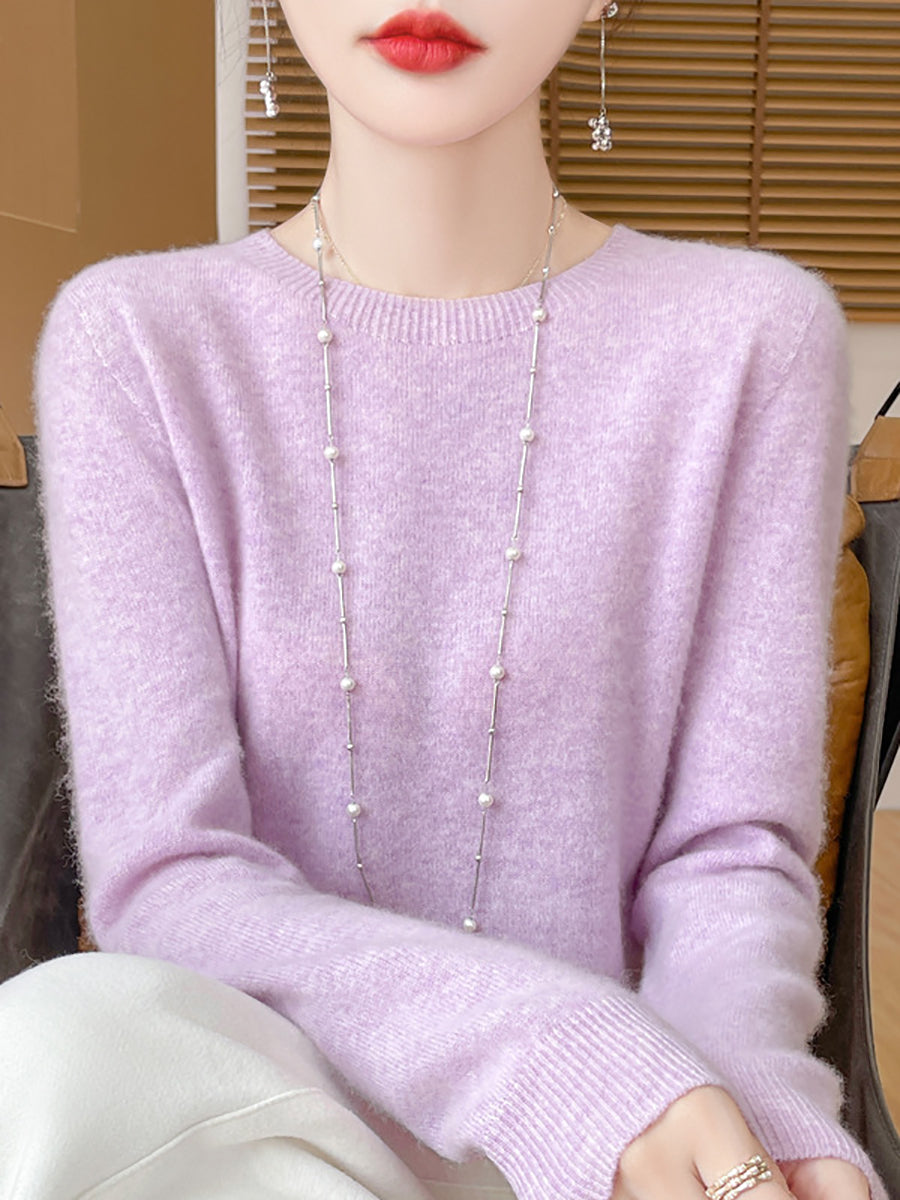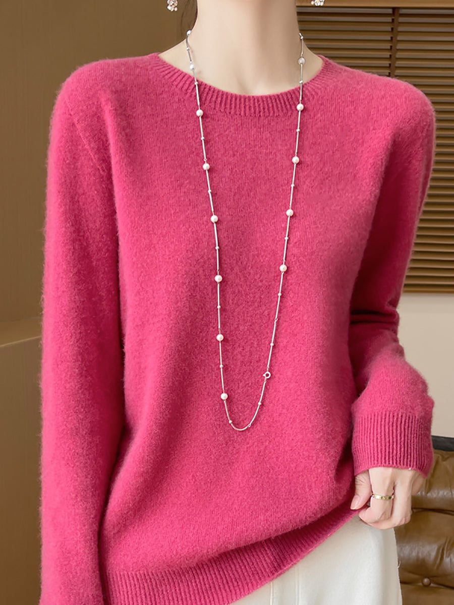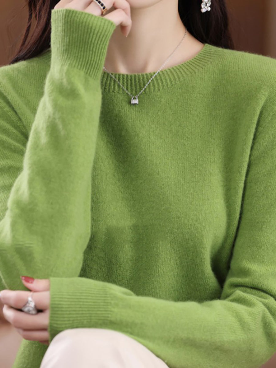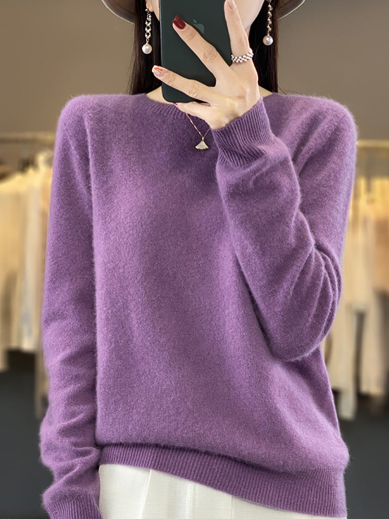 Women Winter Pure Color O-Neck Wool Sweater