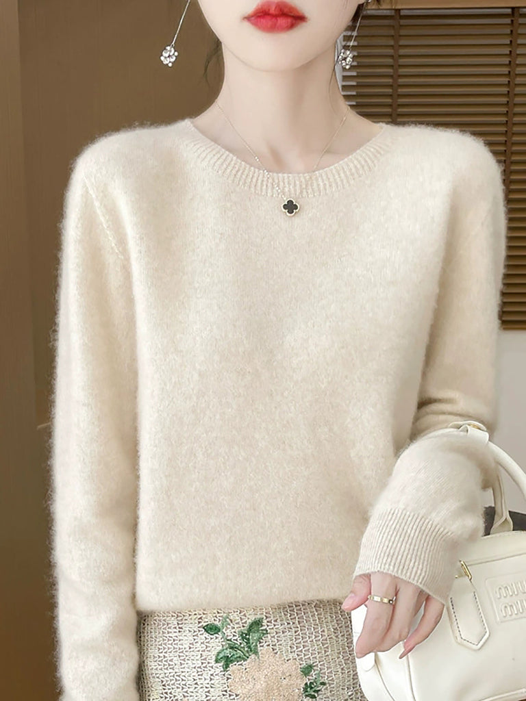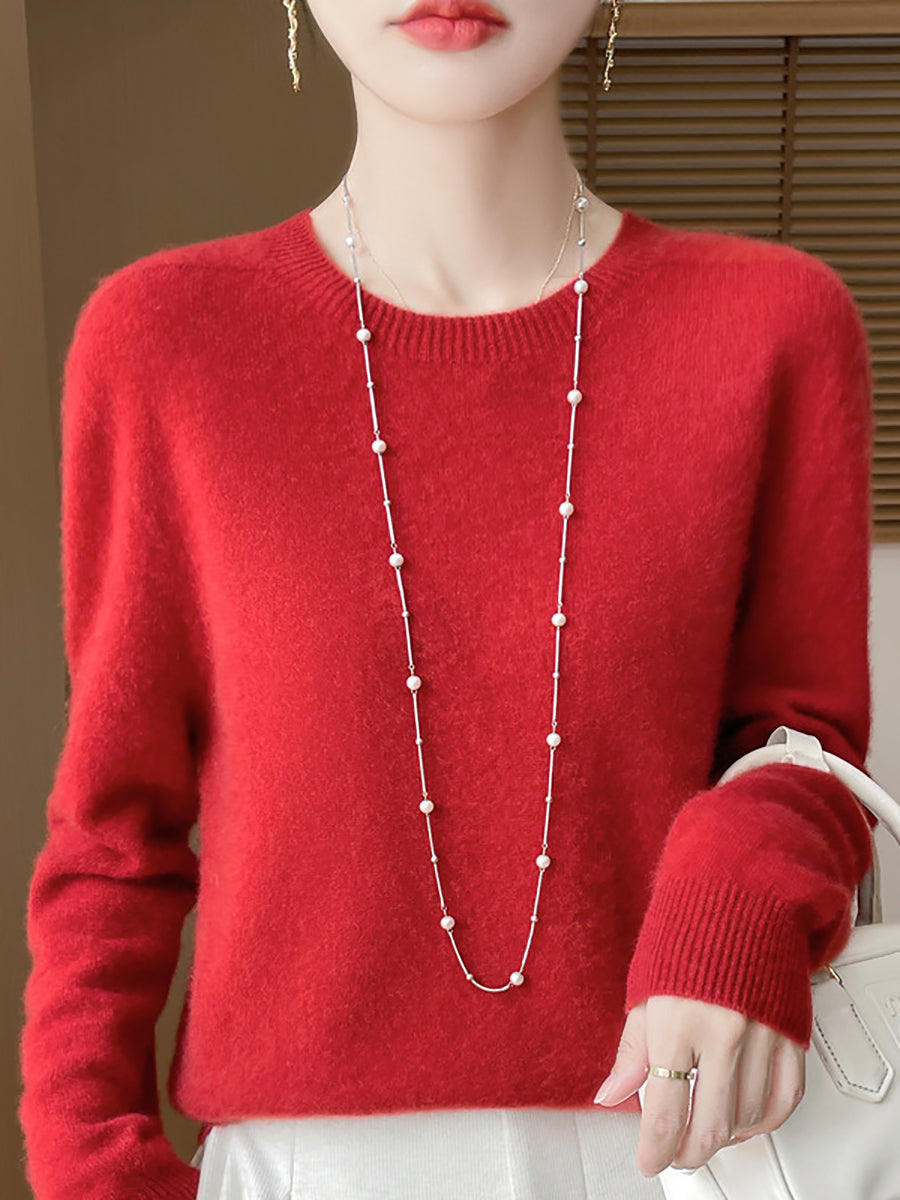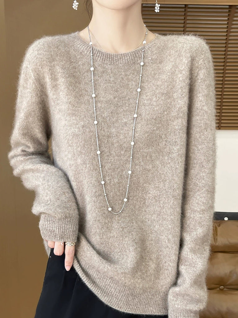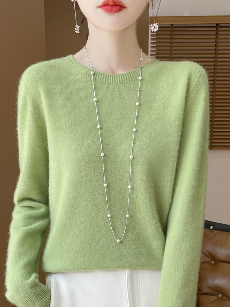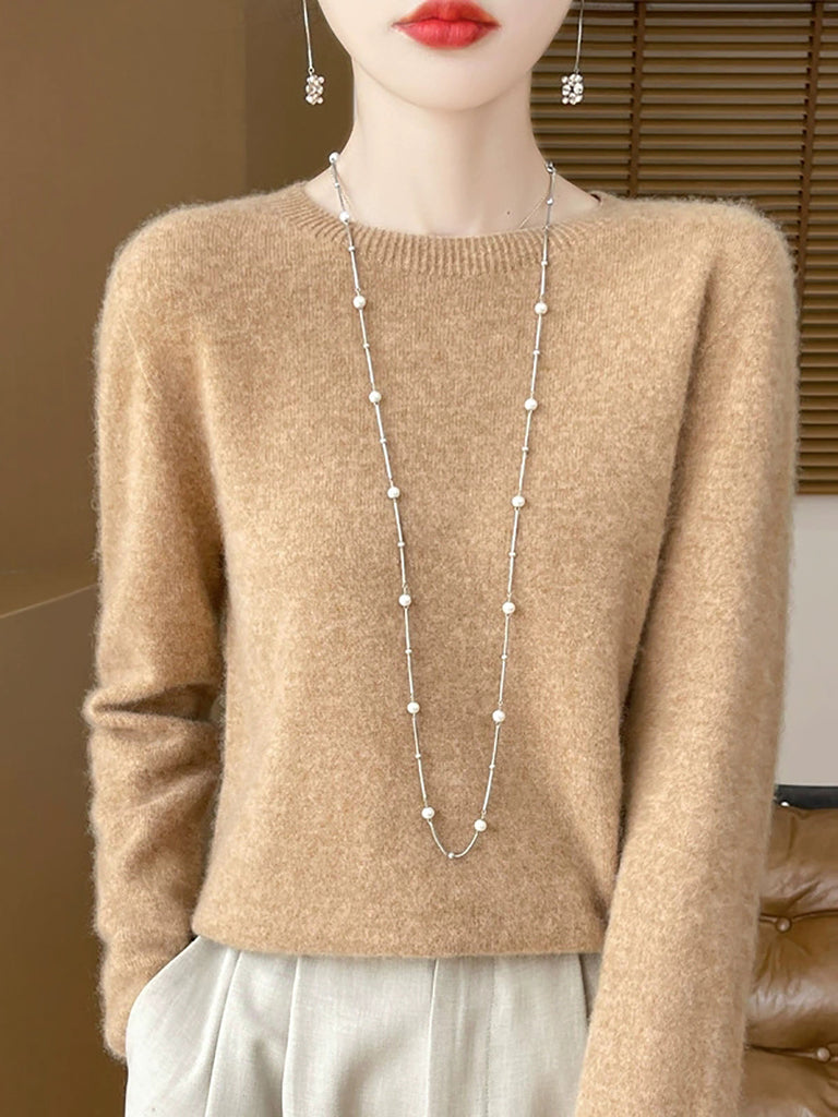 Women Winter Pure Color O-Neck Wool Sweater