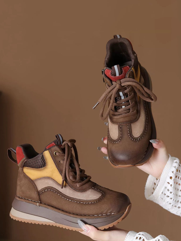 Women Vintage Genuine Leather Spliced High-top Shoes