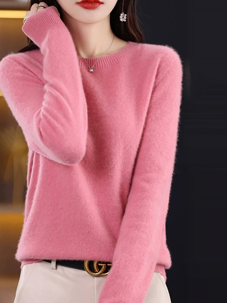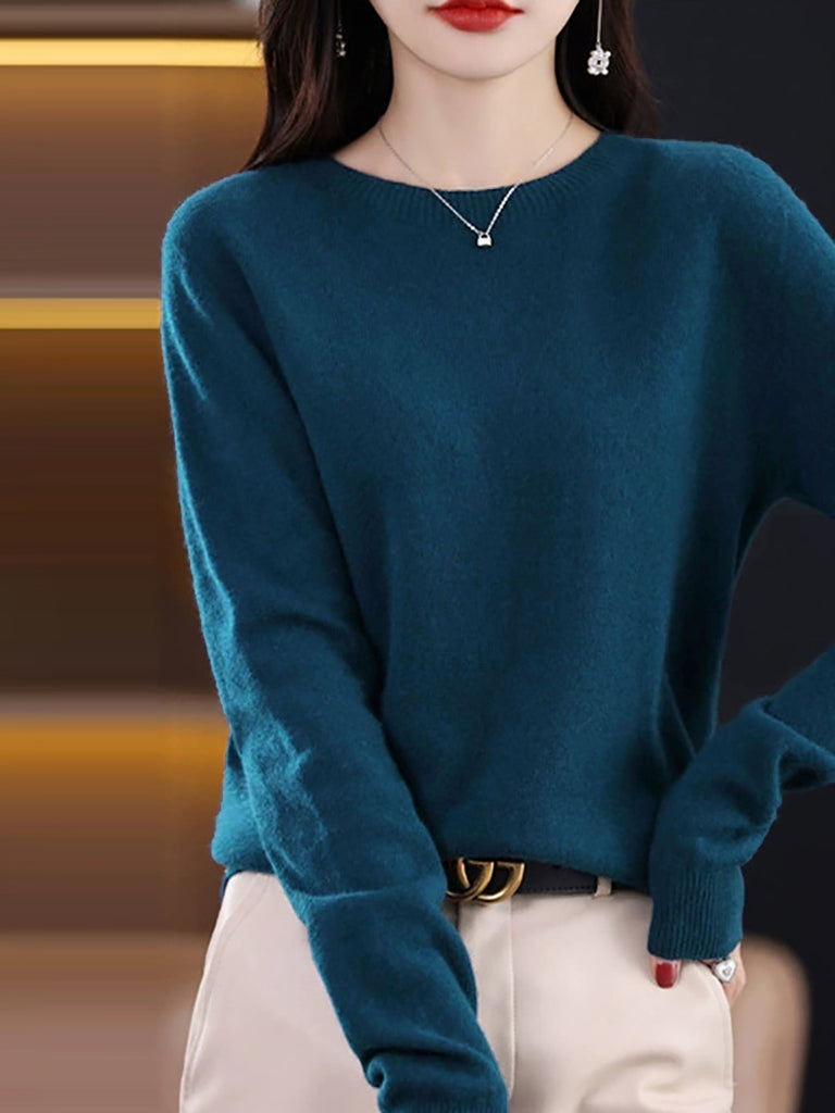 Women Autumn Casual Knitted Wool O-Neck Sweater