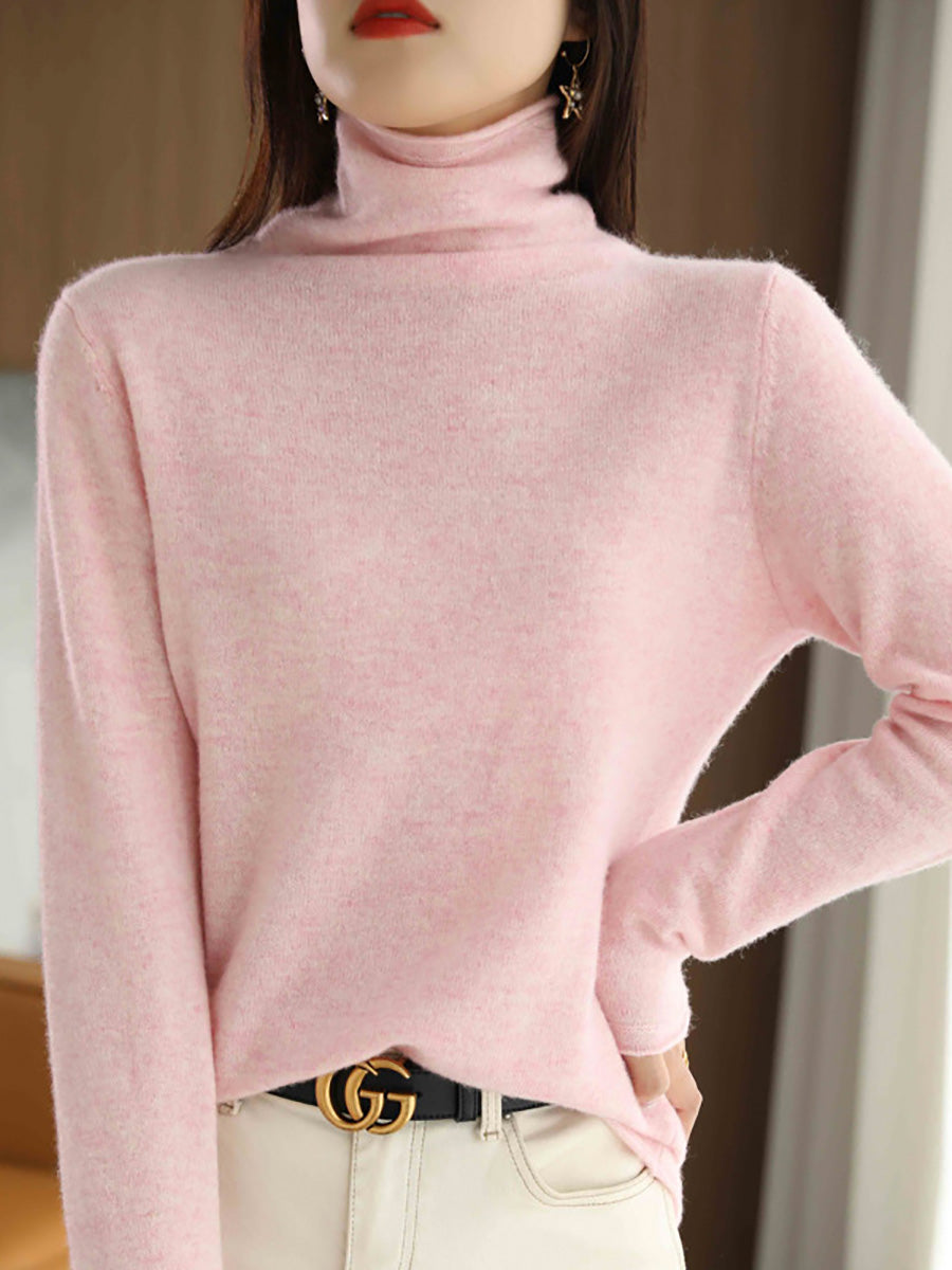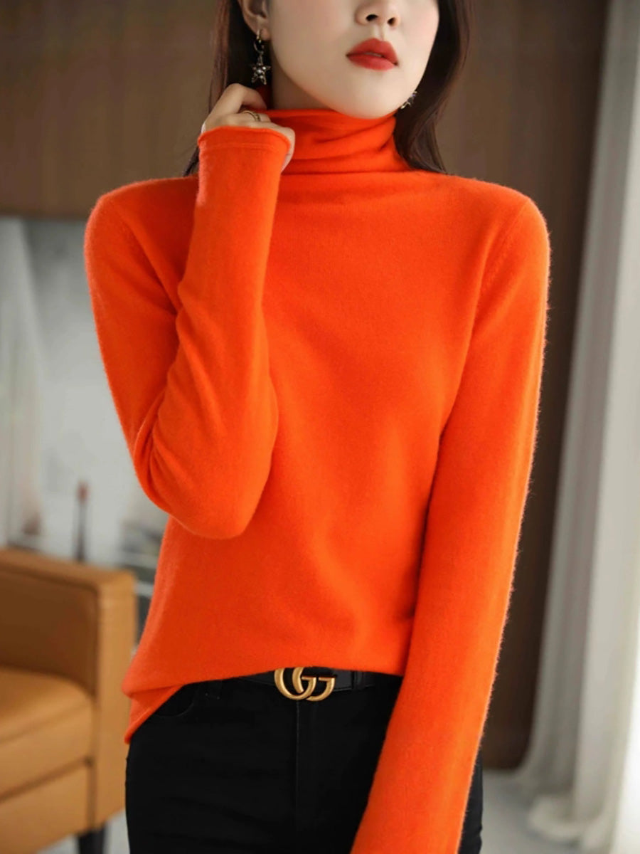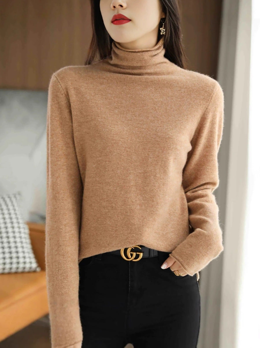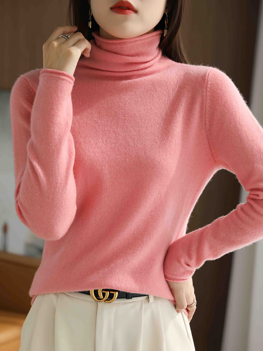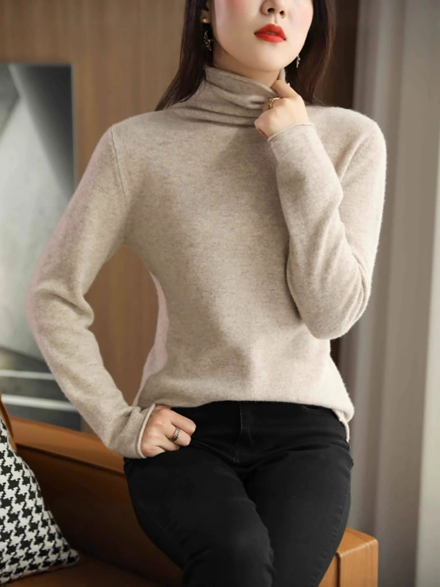 Women Autumn Artsy Pure Color Wool Turtleneck Sweater