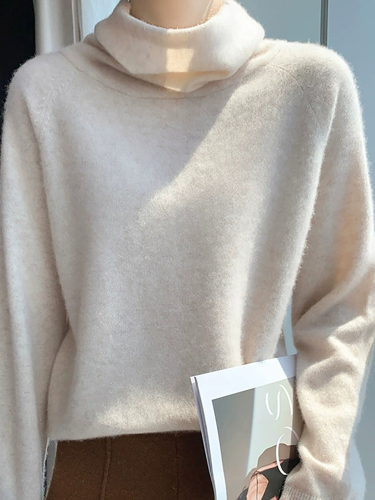 Women Autumn Casual Pure Color Knitted Turtleneck Sweater