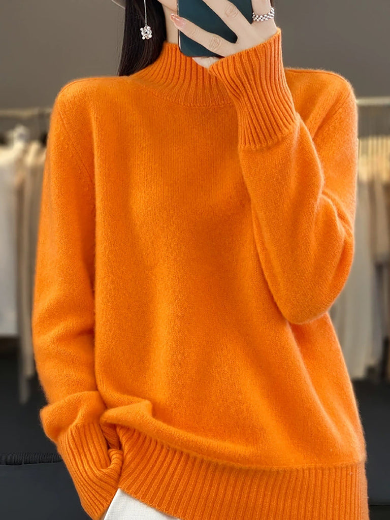 Women Autumn Pure Color 100%Wool Half-Turtleneck Sweater