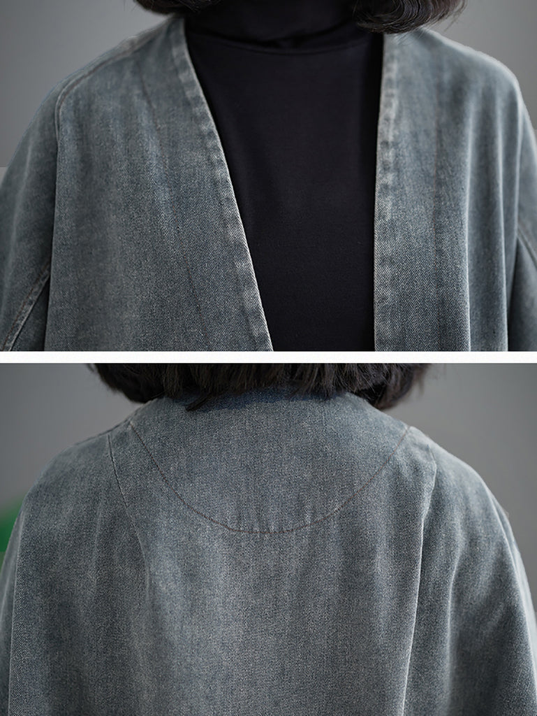 Crafted with high-quality cotton and featuring a solid pattern, this Women Retro Washed Spring Denim Short Coat boasts a stylish V-neck collar and full raglan sleeves. Its vintage-inspired design adds a touch of nostalgia to your spring and summer wardrobe.