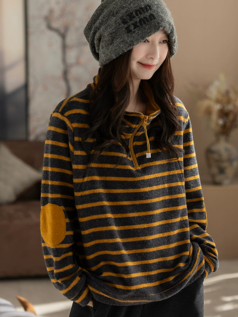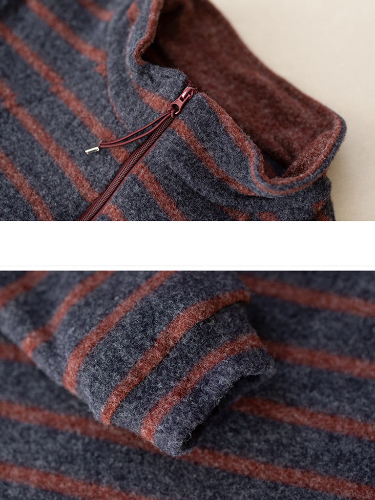 Women Vintage Autumn Stripe Stand Collar Blouse