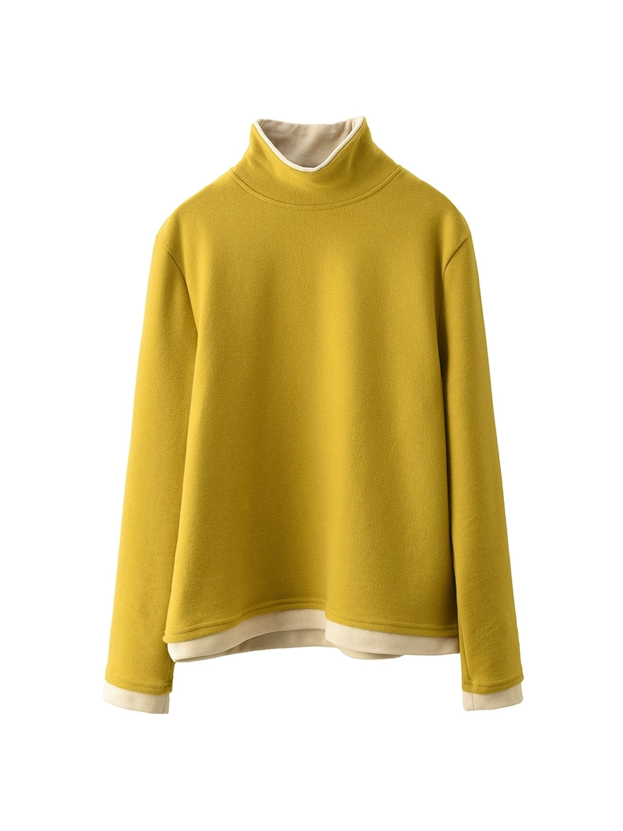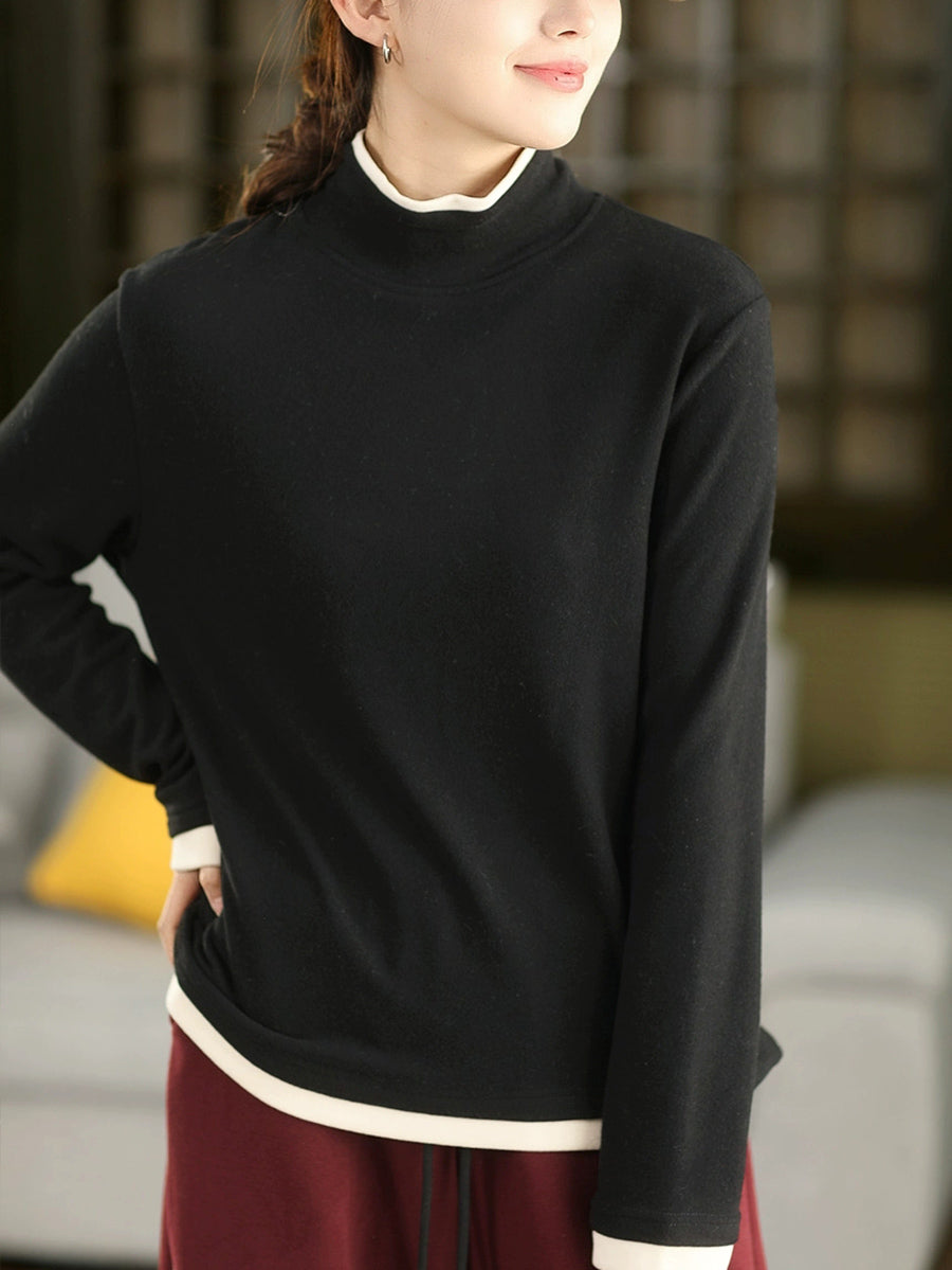 Women Winter Casual Colorblock Fleece Turtleneck Blouse