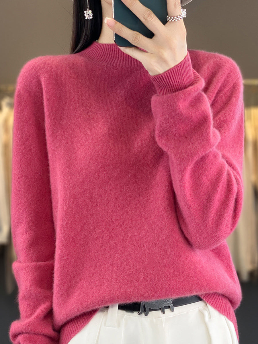 Women Winter Casual Pure Color Half-Turtleneck Sweater