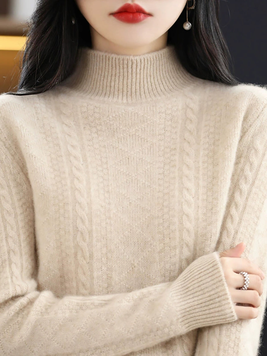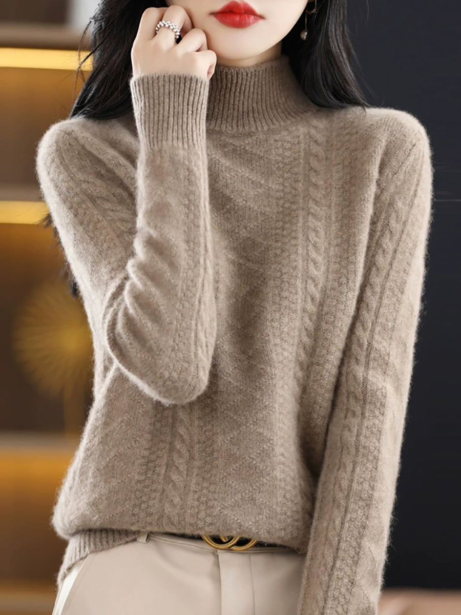 Women Winter Pure Color Half-Turtleneck Knitted Sweater