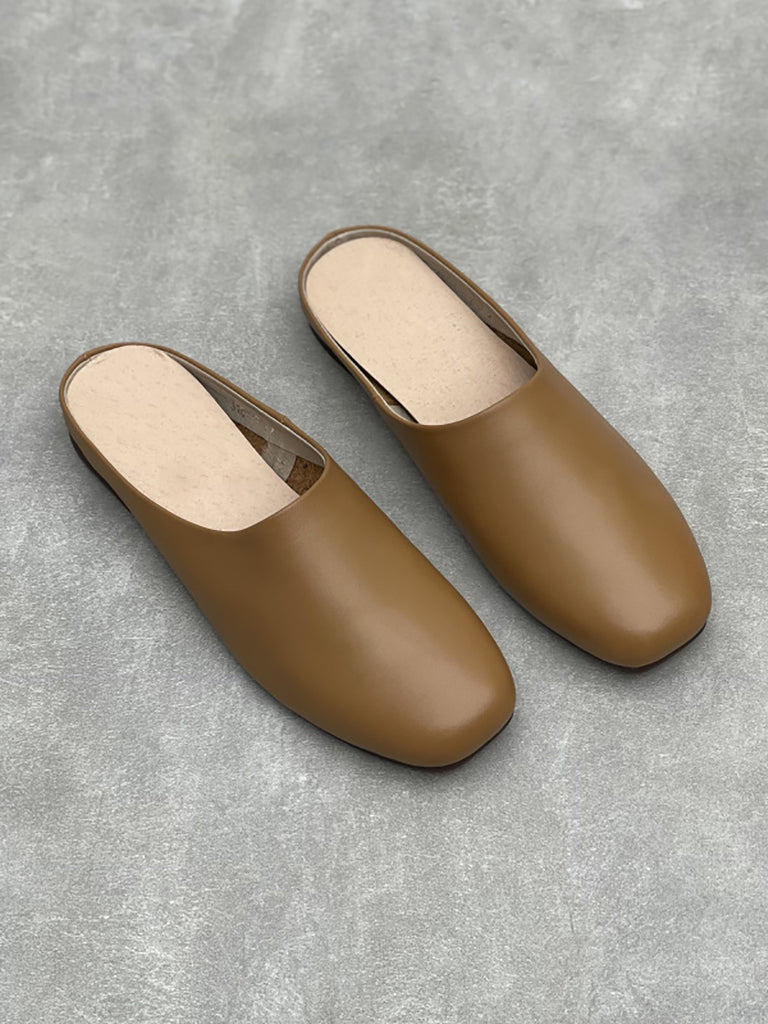 Women Casual Summer Genuine Leather Low Heel Slippers