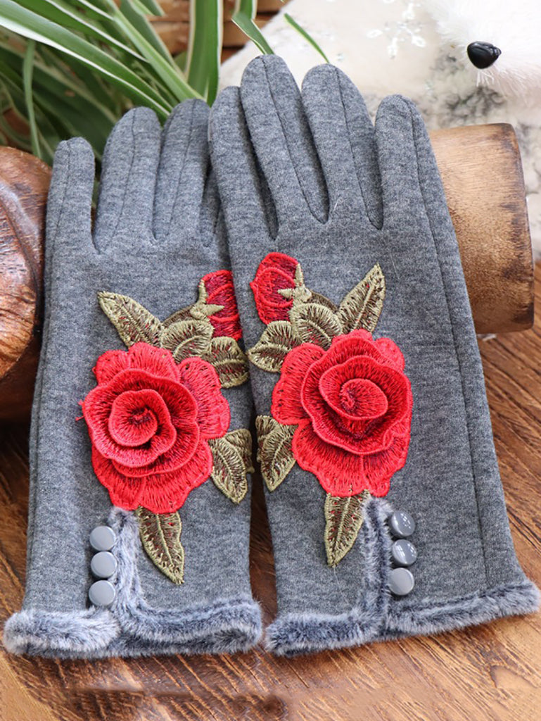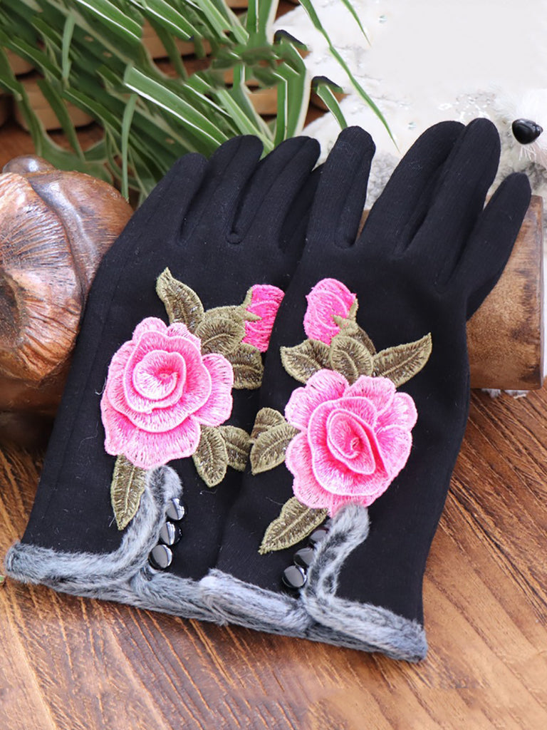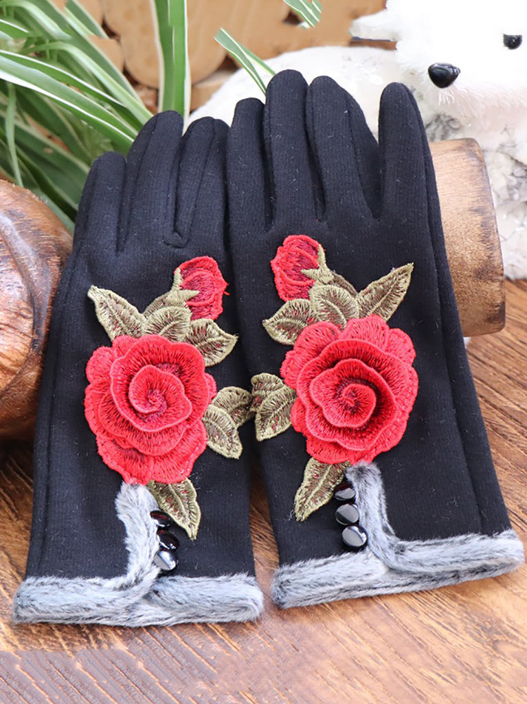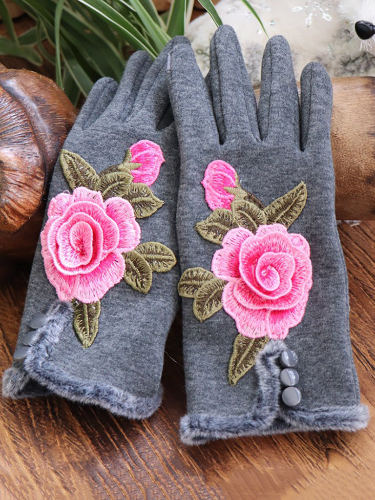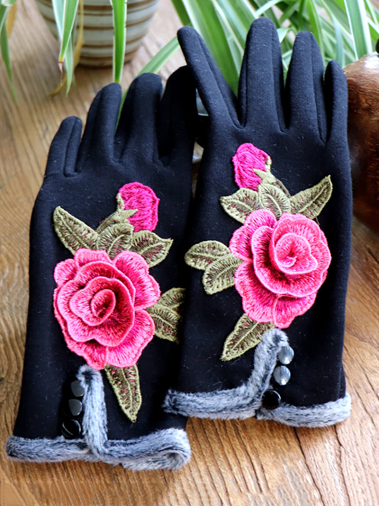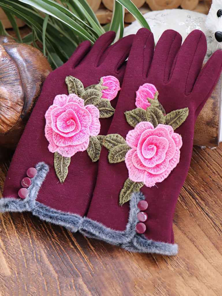 Women Ethnic Winter Embroidery Fleece-lined Gloves