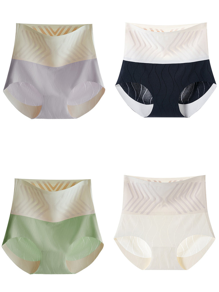 4 Pieces Summer Women Colorblock High Waist Underwear