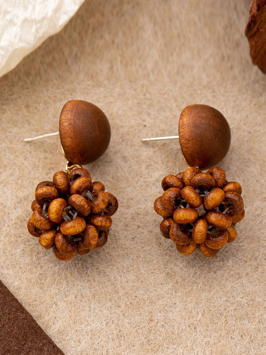 Women Vintage Wooden Pinecone S925Sliver Earrings