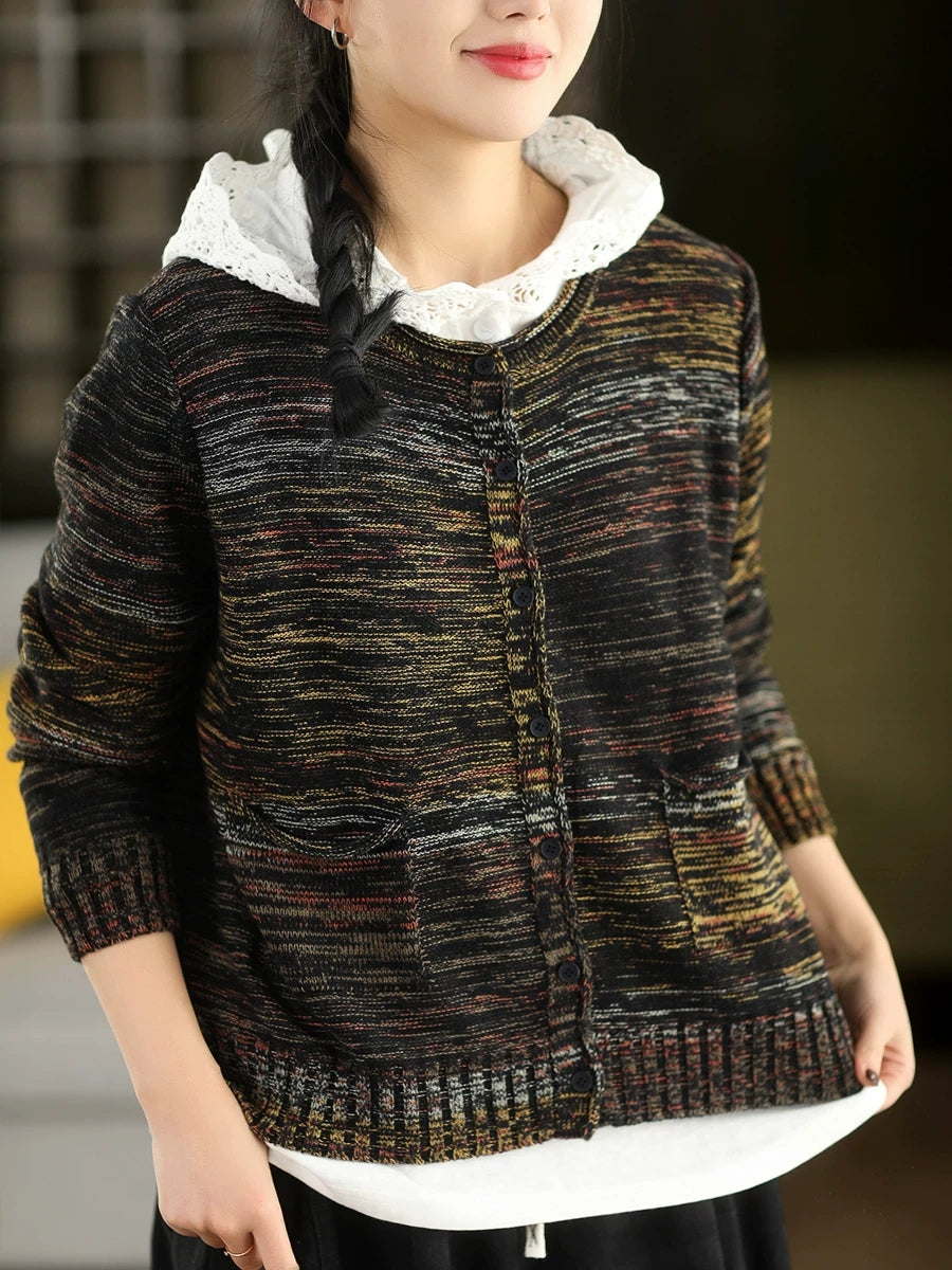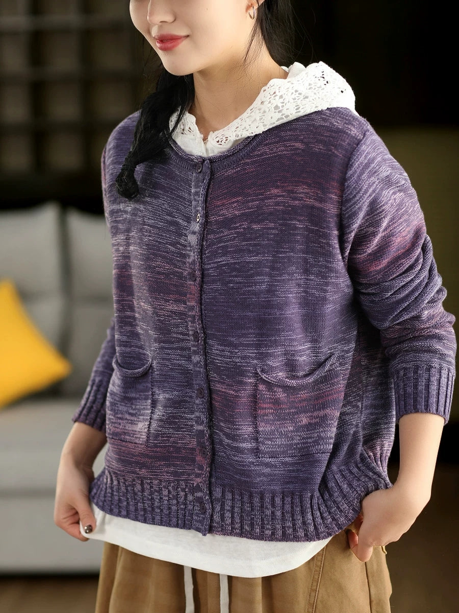 Women Artsy Spring O-Neck Cardigan Sweater