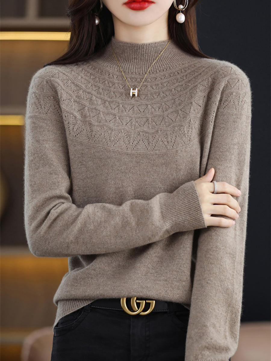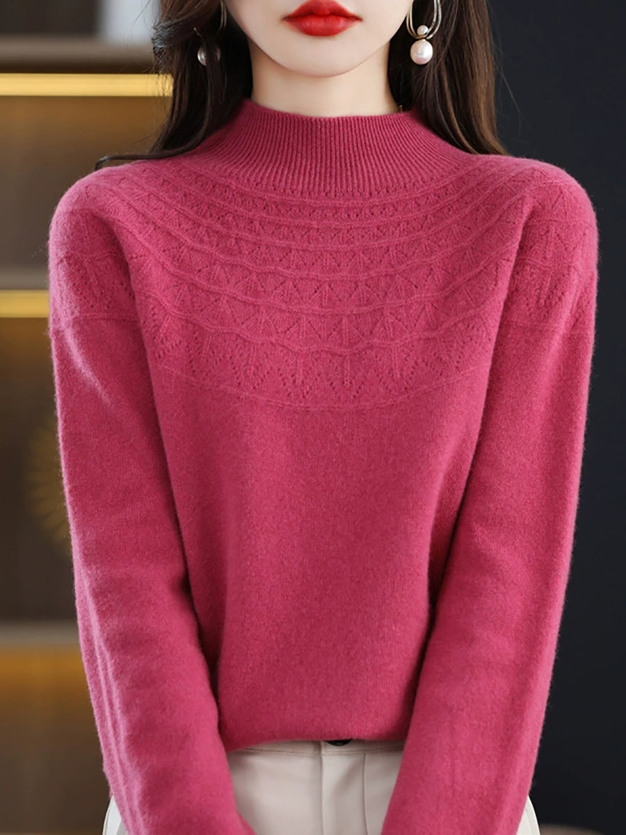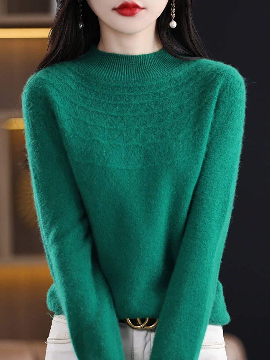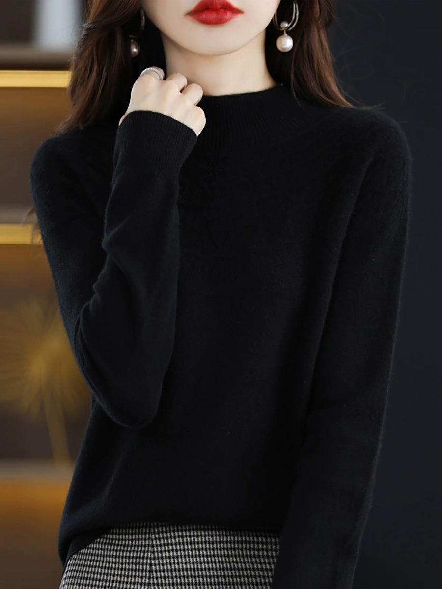 Women Winter Artsy Knitted Half-Turtleneck Sweater