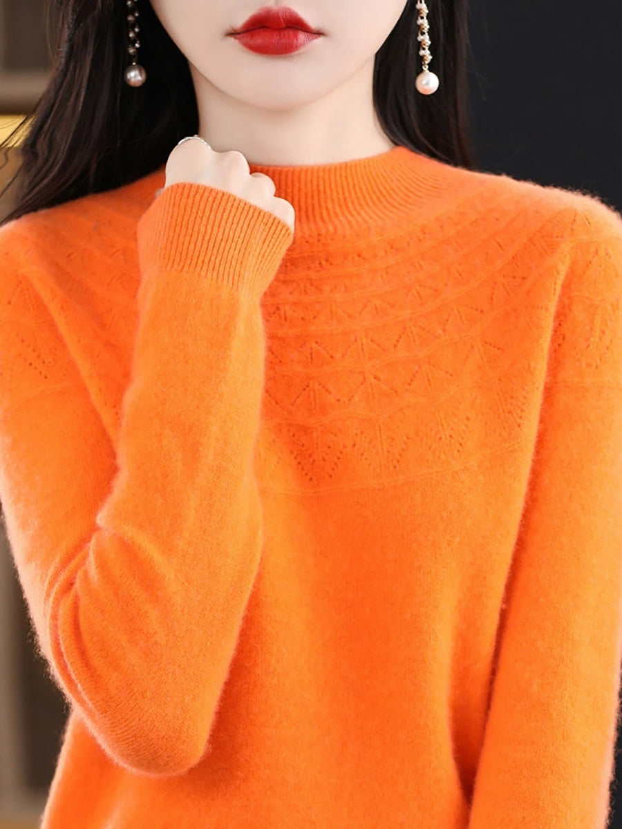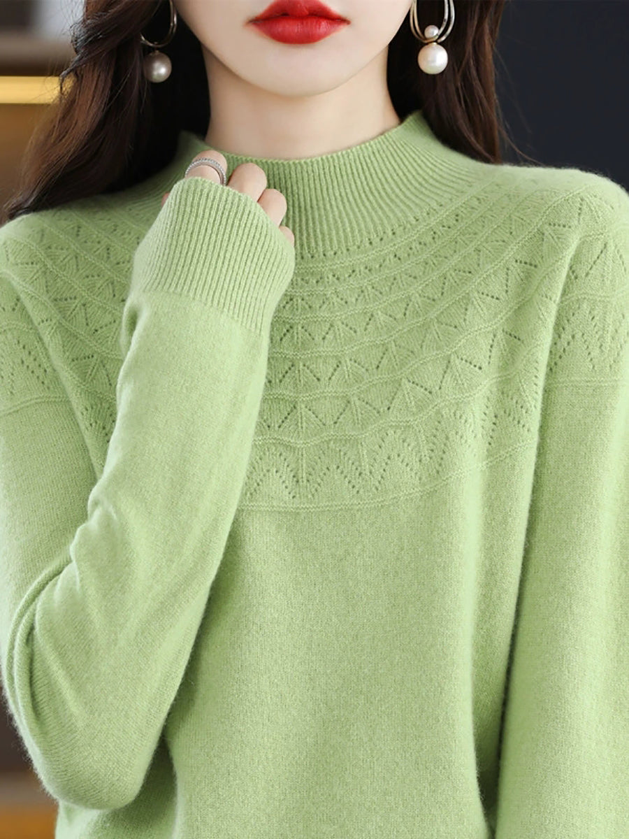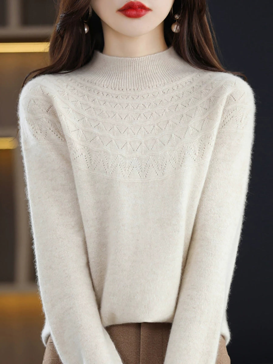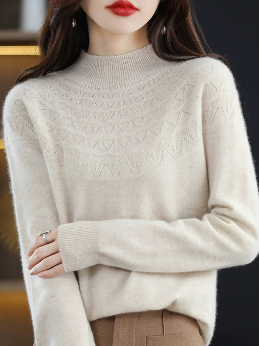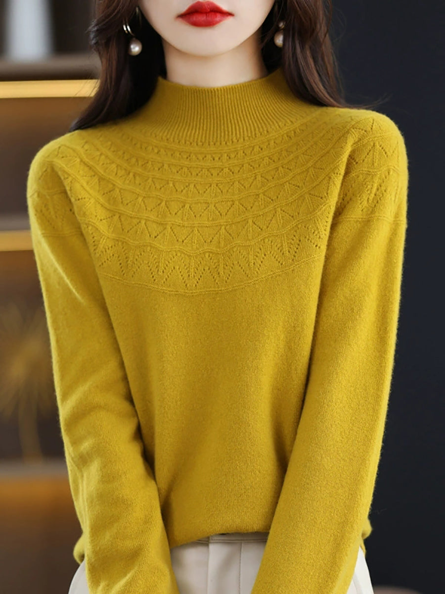 Women Winter Artsy Knitted Half-Turtleneck Sweater