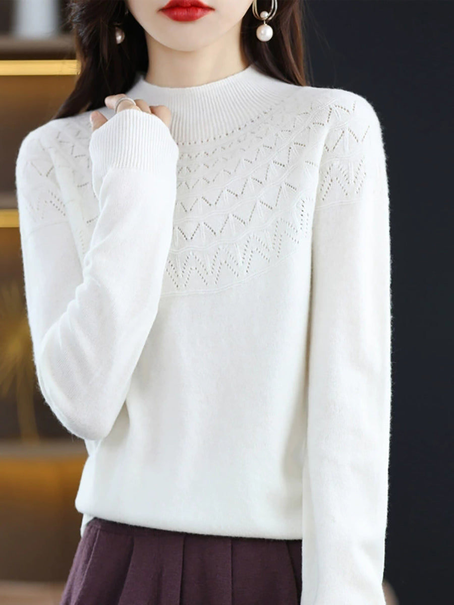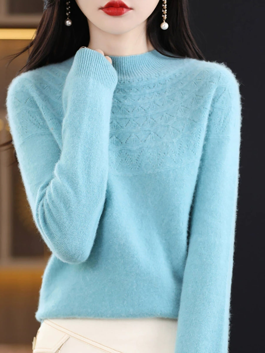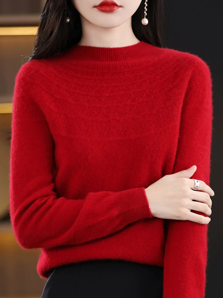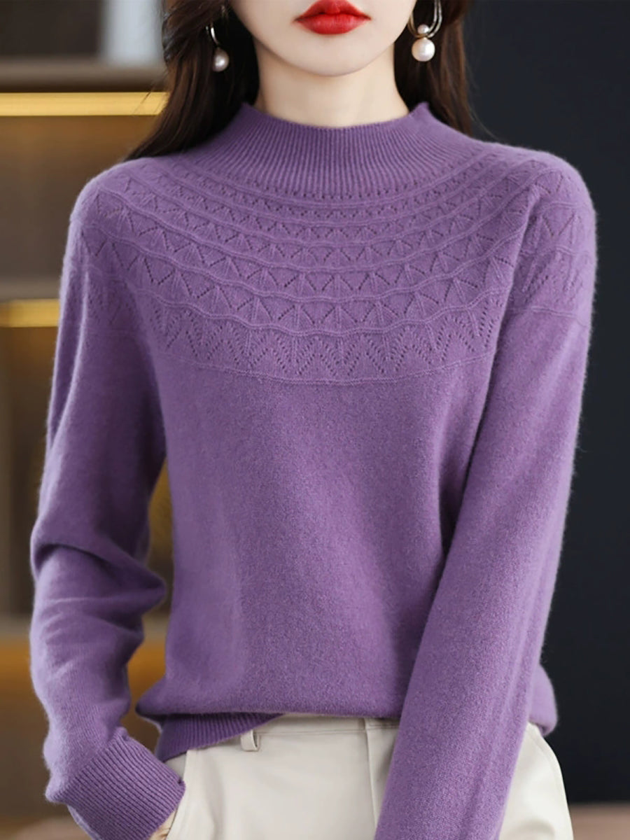 Women Winter Artsy Knitted Half-Turtleneck Sweater