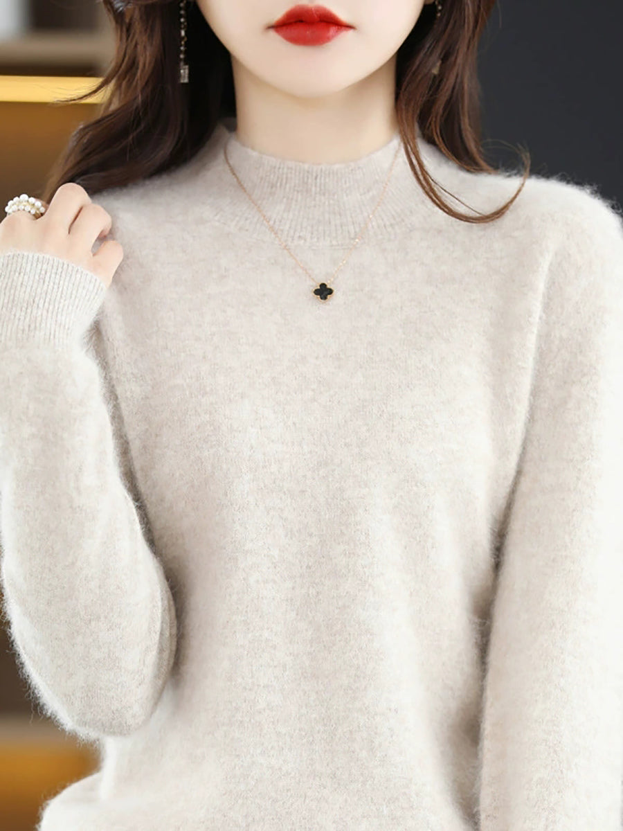 Women Casual Spring Pure Color Half-turtleneck Sweater