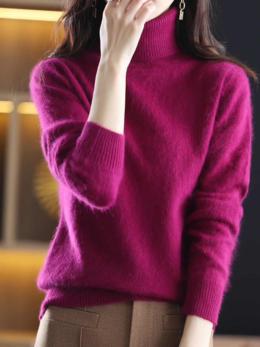 Women Casual Spring Pure Color Turtleneck Sweater