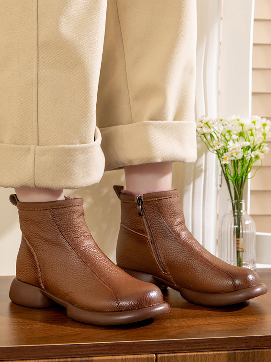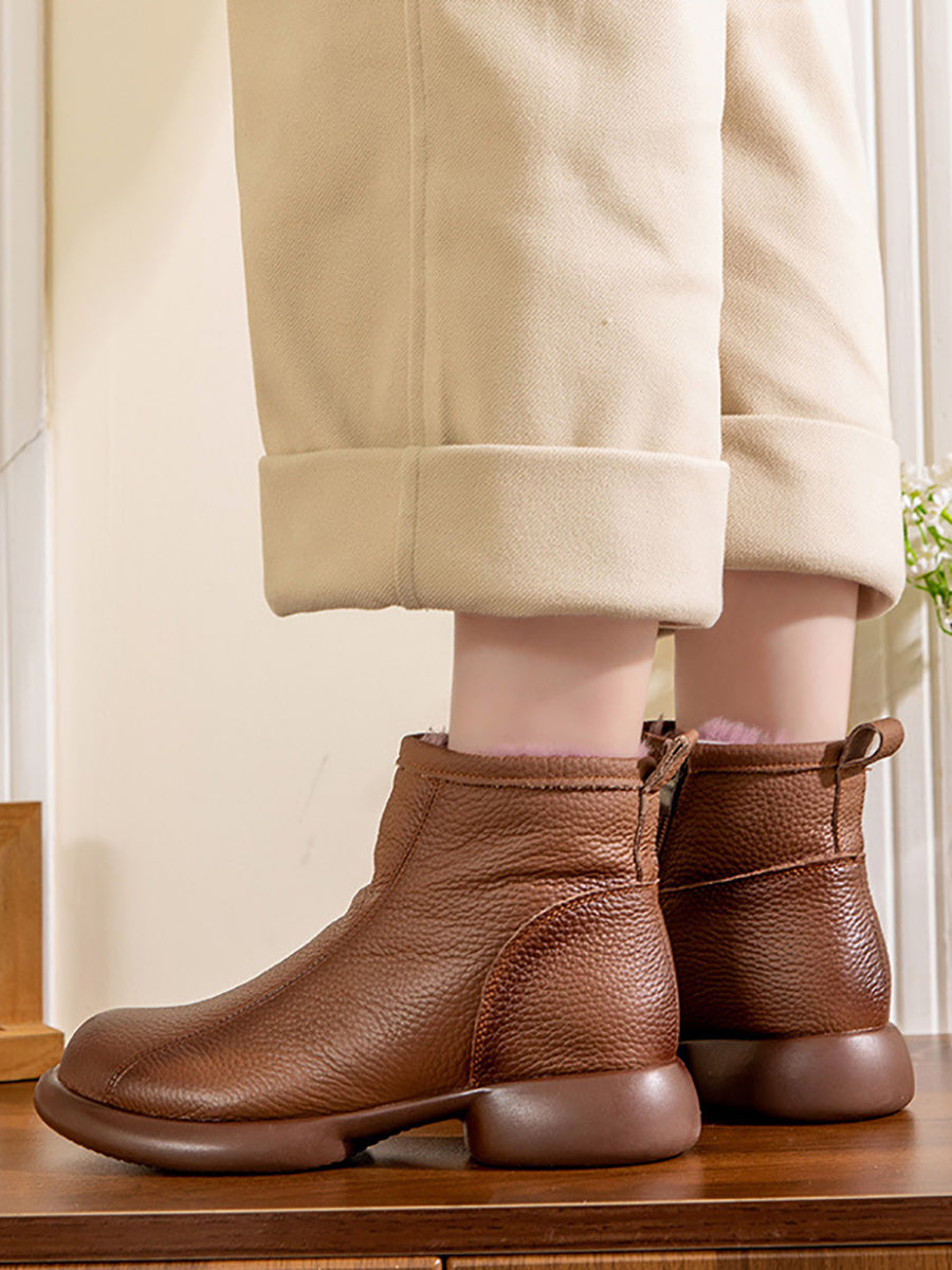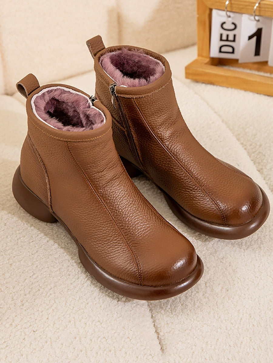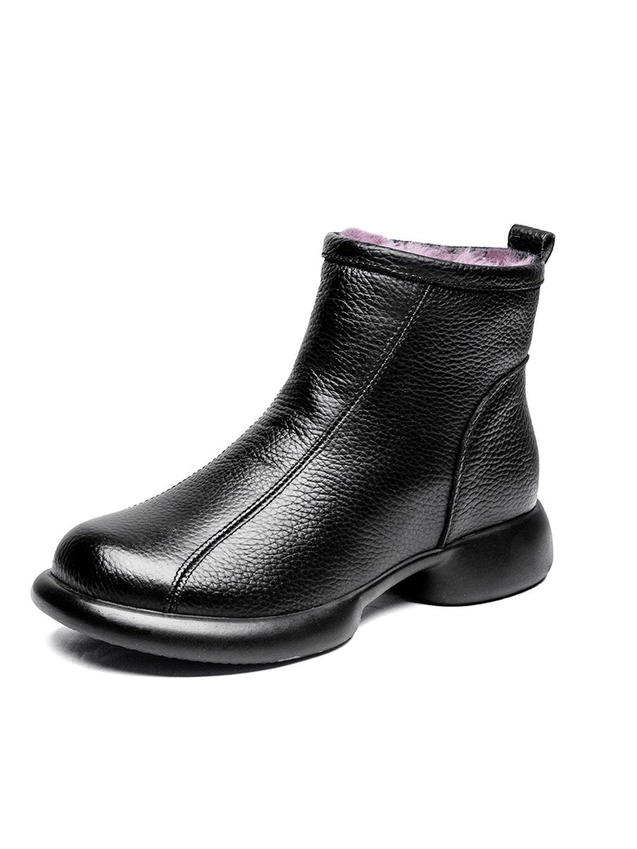 Women Winter Pure Color Fleece-lined Ankle Boots