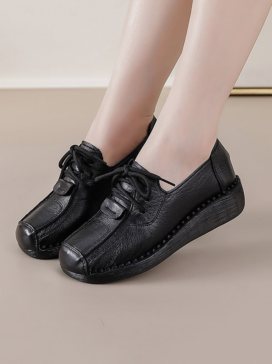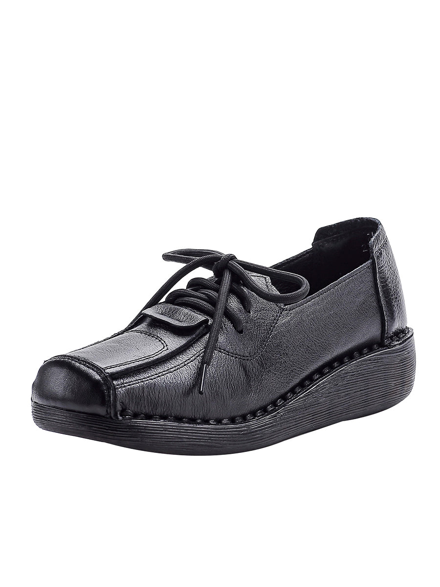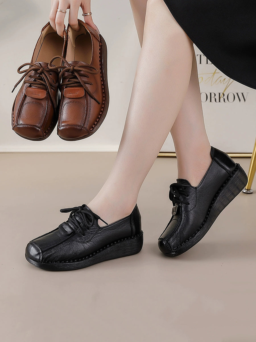Women Winter Retro Genuine Leather Platform Shoes