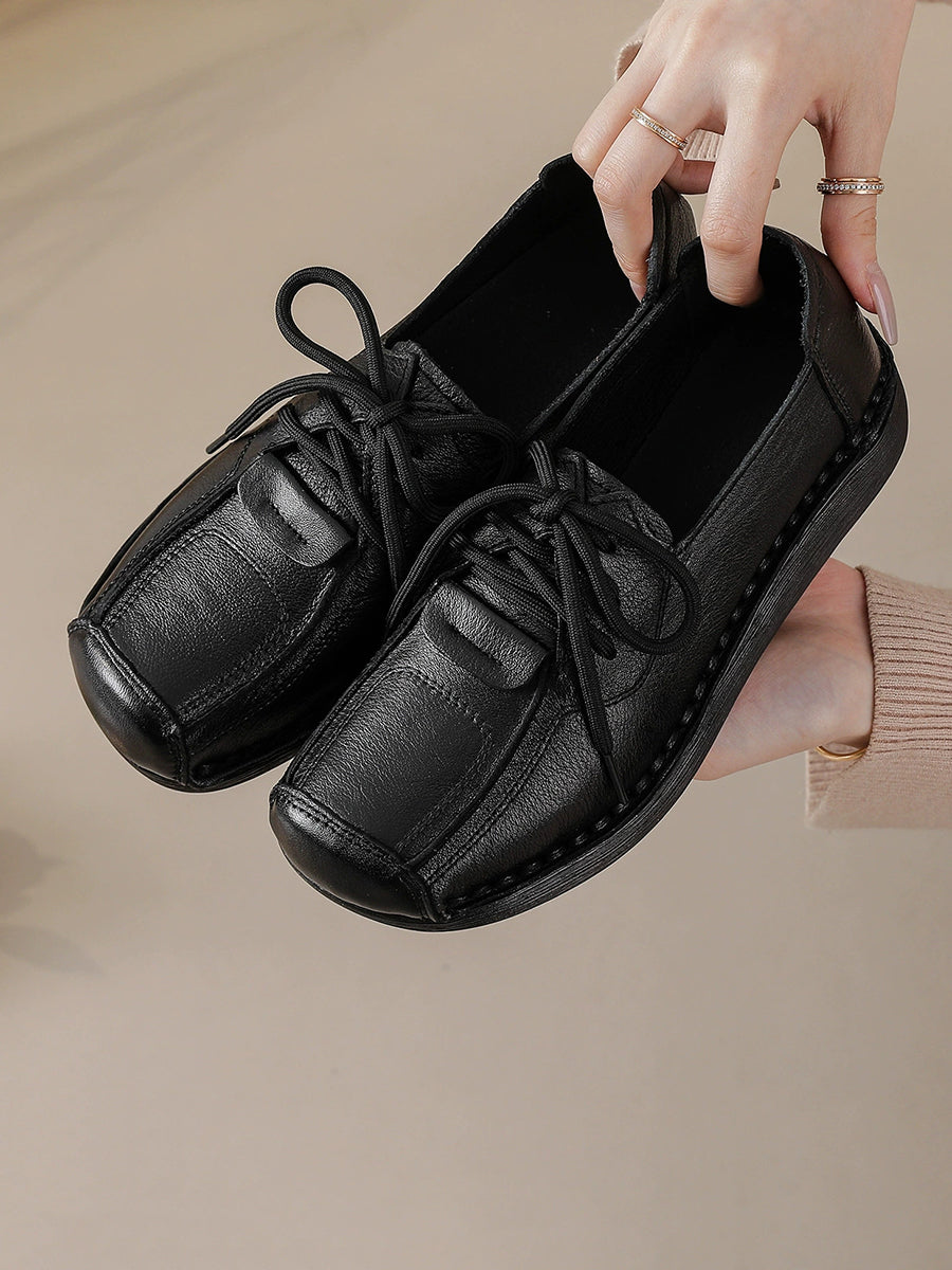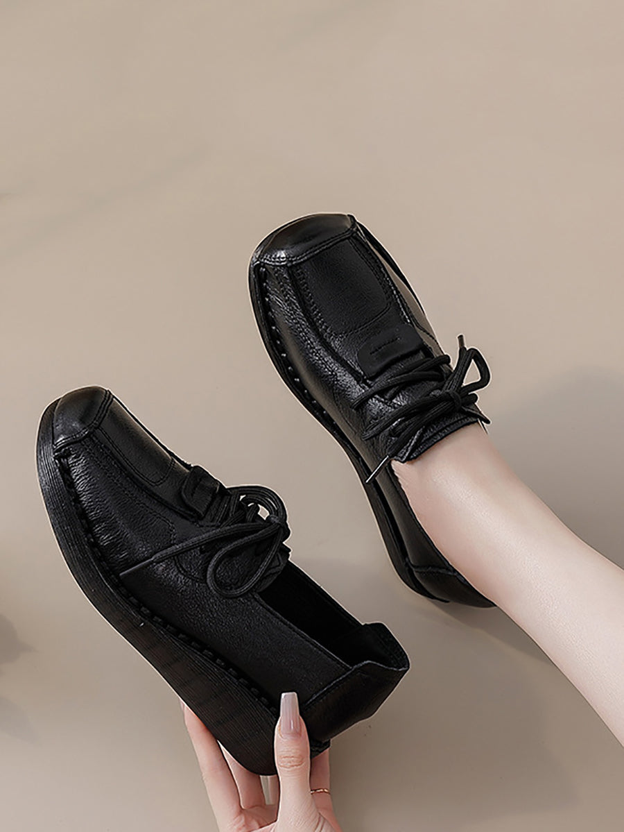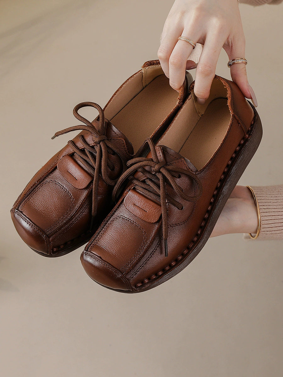 Women Winter Retro Genuine Leather Platform Shoes