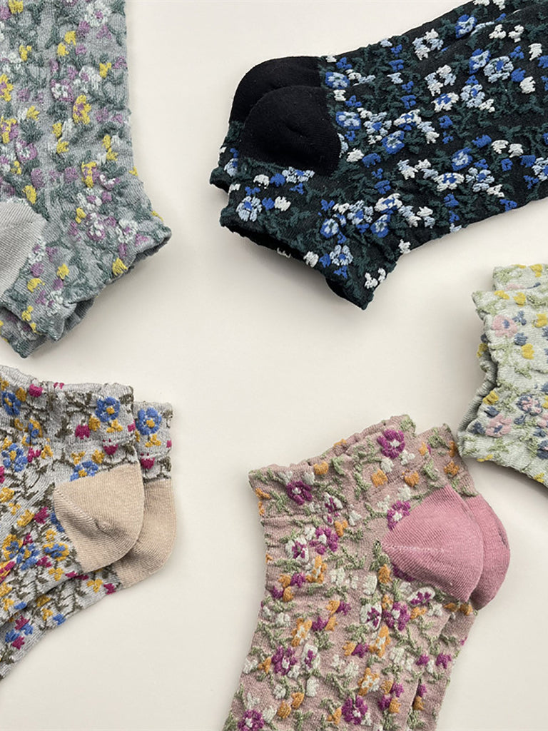 5 Pairs Women Artsy Floral Embossing Short Socks