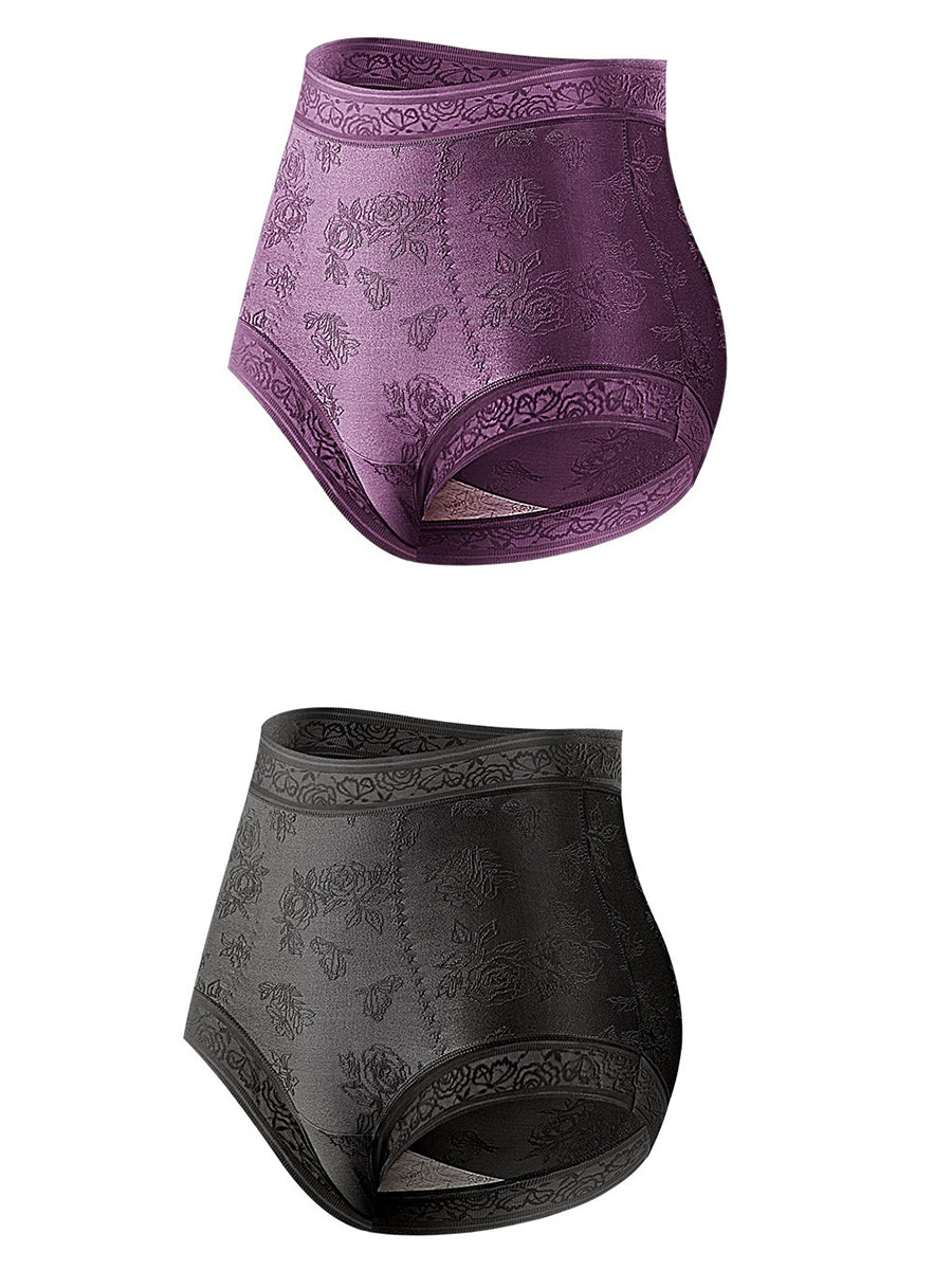 2 Pieces Women Artsy Flower High Waist Underwear