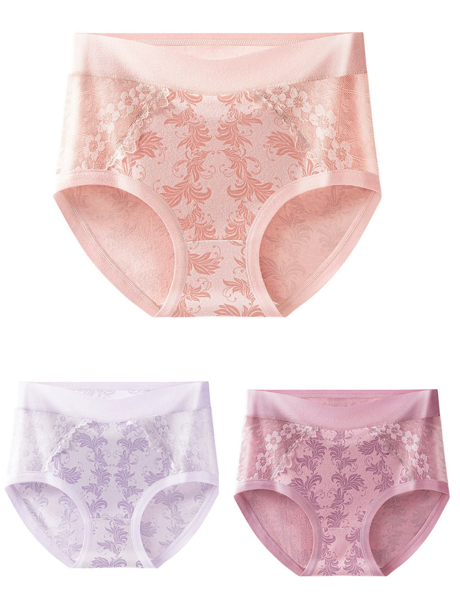 3 Pieces Women Artsy Flower Lace High Waist Underwear