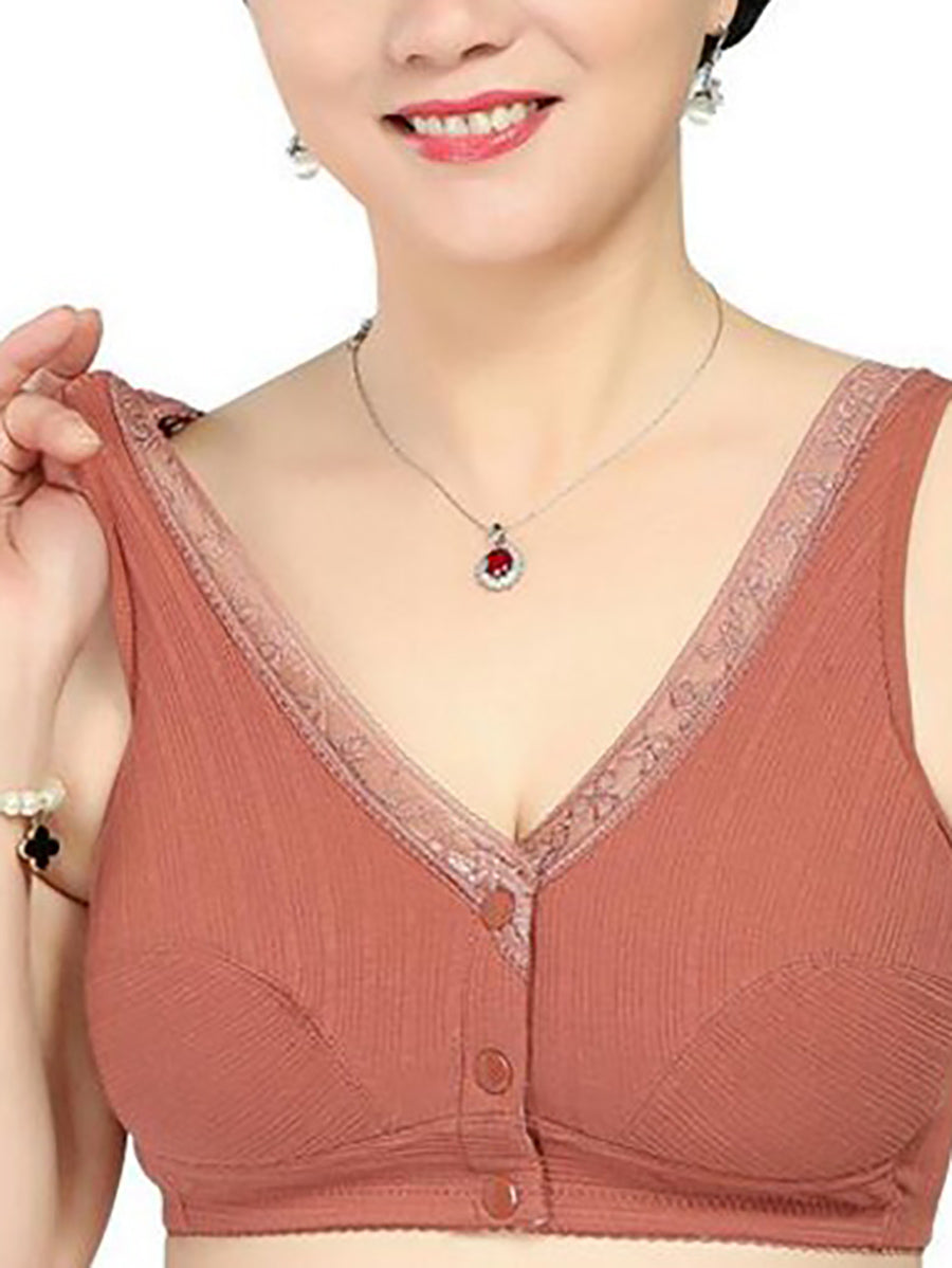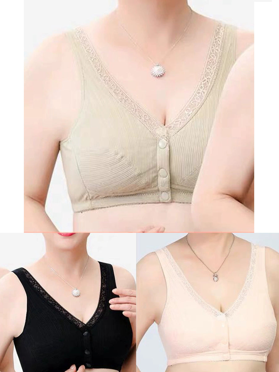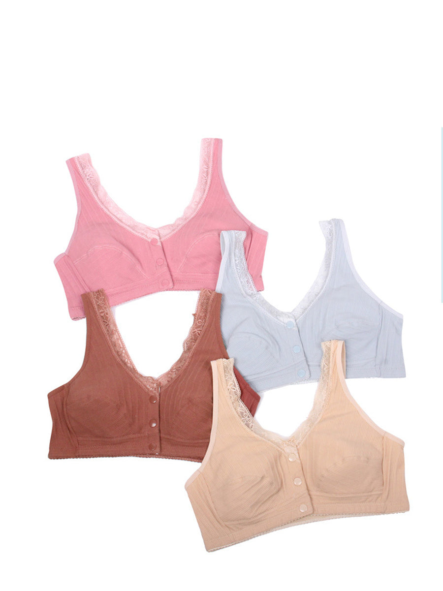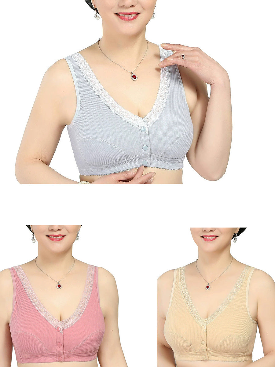 3 Pieces Women Casual Pure Color Front-buttoned Wireless Bra