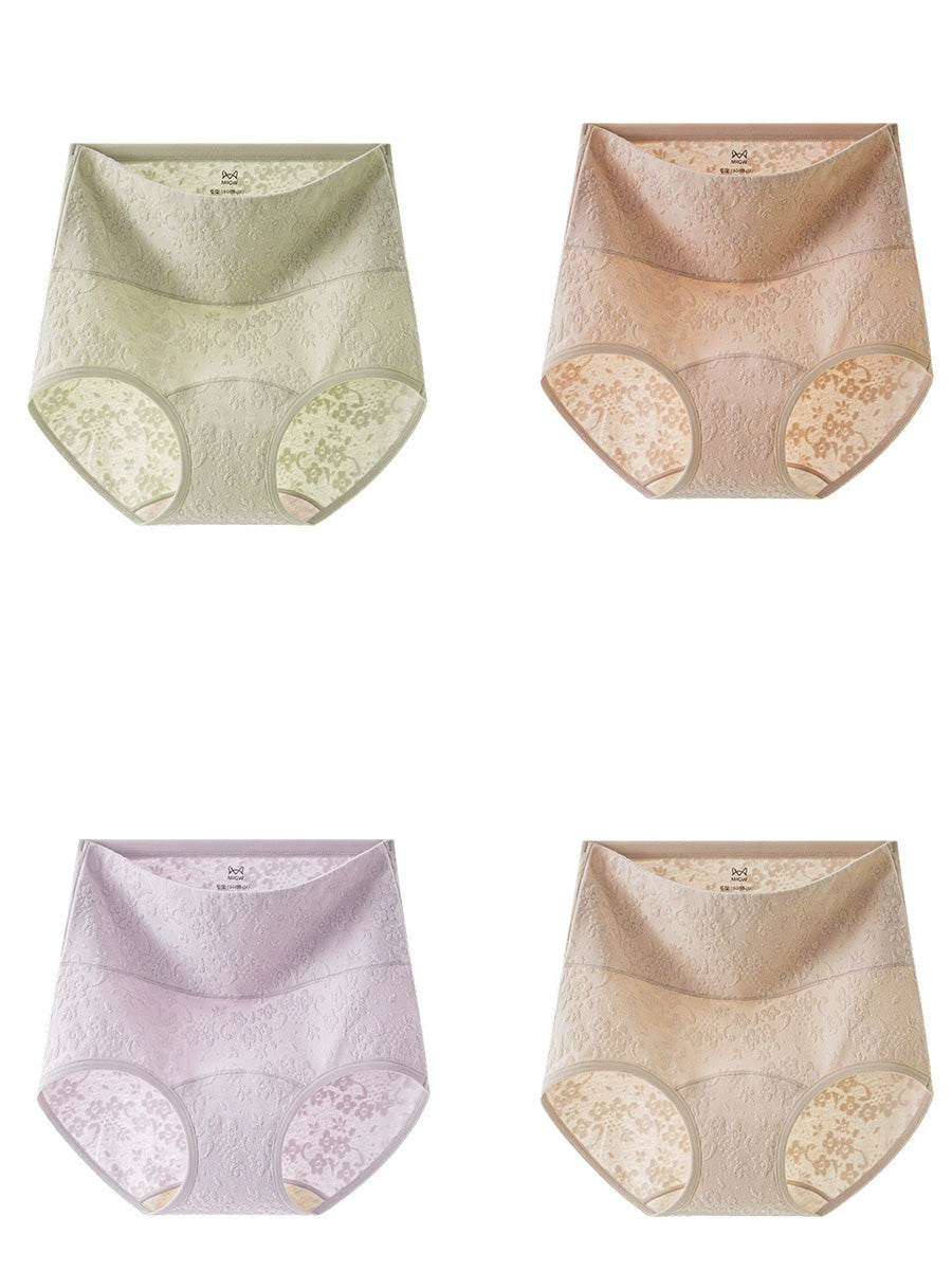 4 Pieces Women Artsy Flower Embossing High Waist Underwear