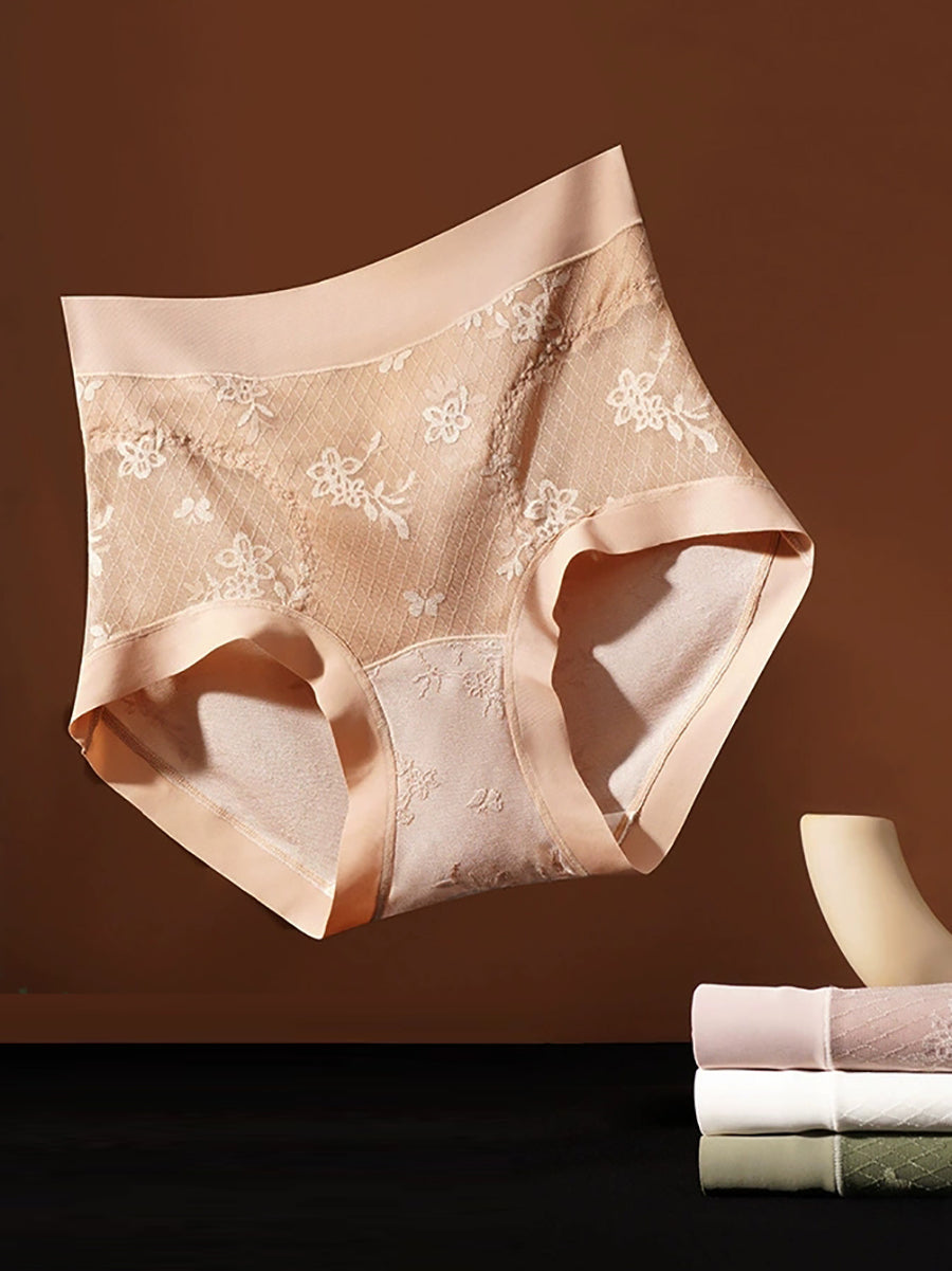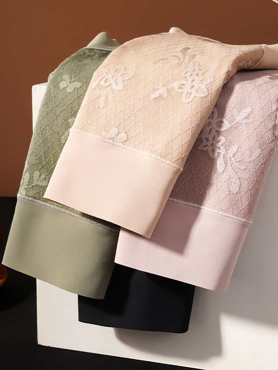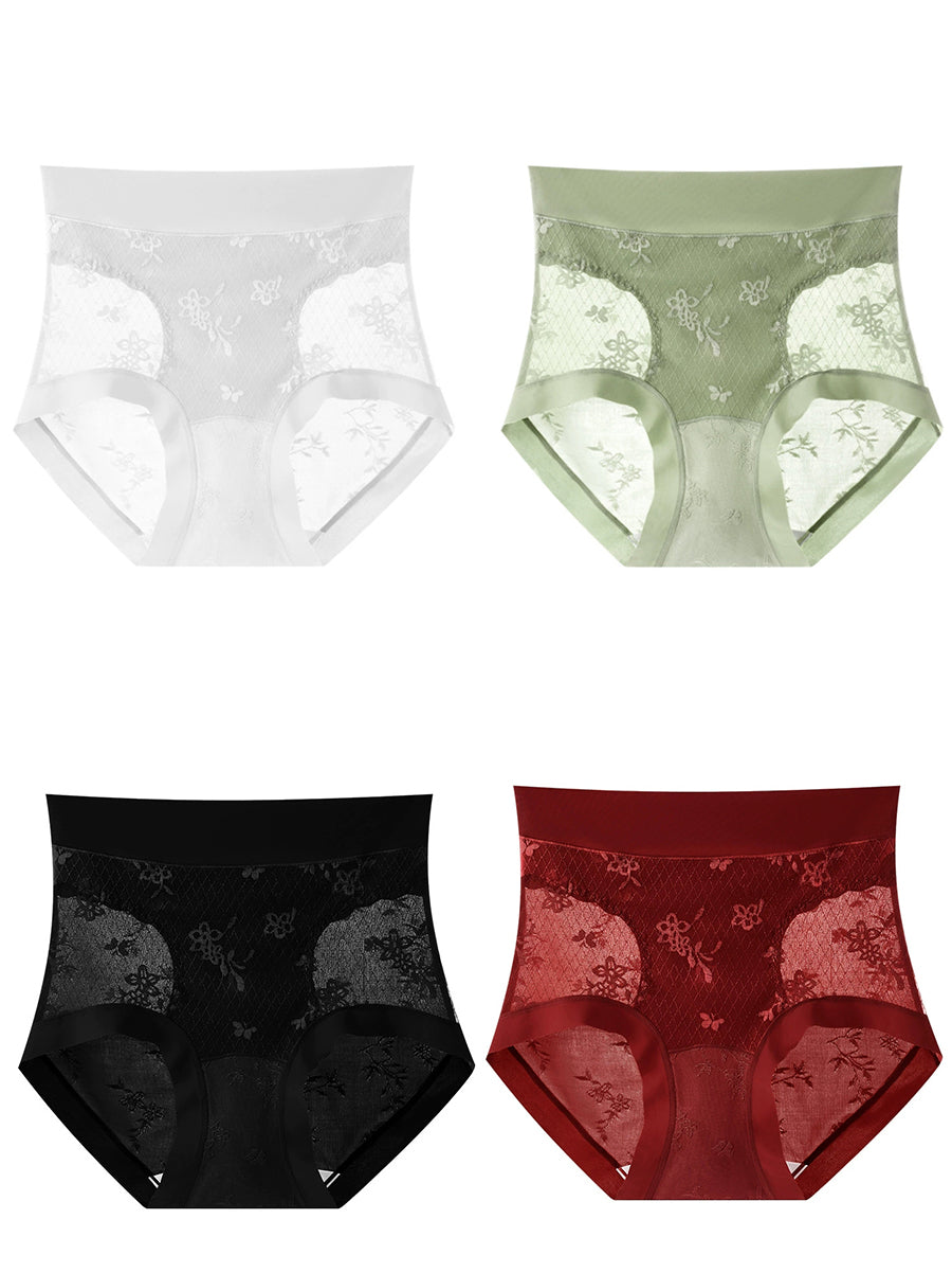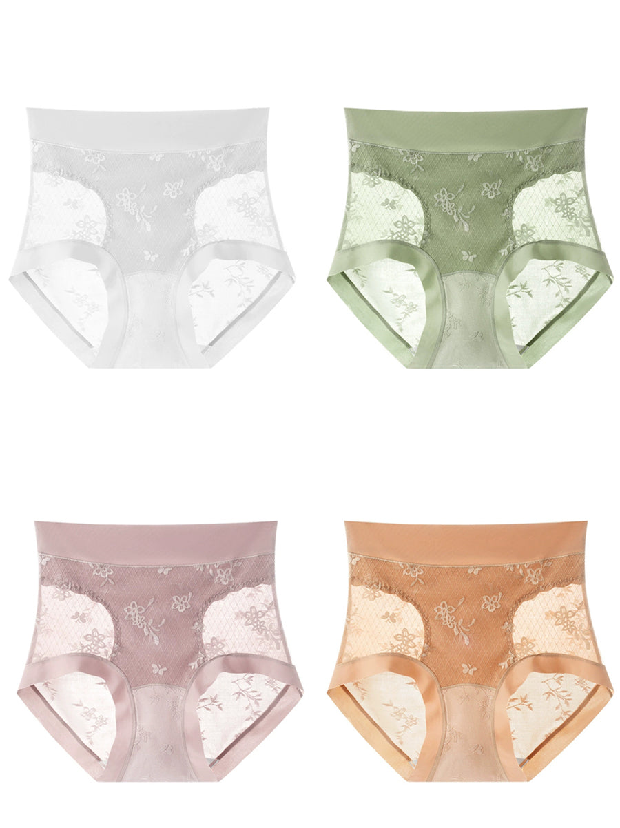 4 Pieces Women Artsy Flower Jacquard High Waist Underwear