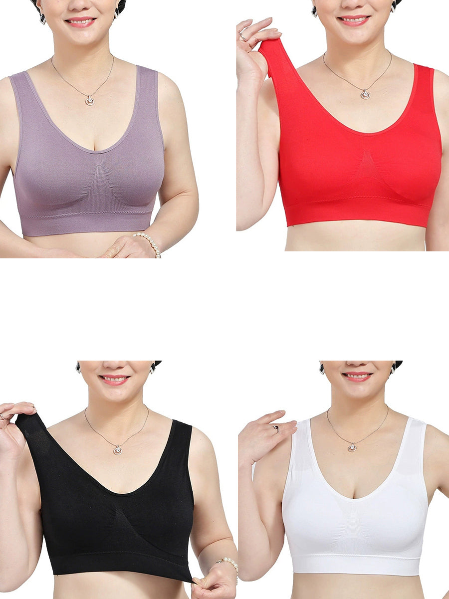 4 Pieces Women Casual Pure Color One-piece Wireless Bra