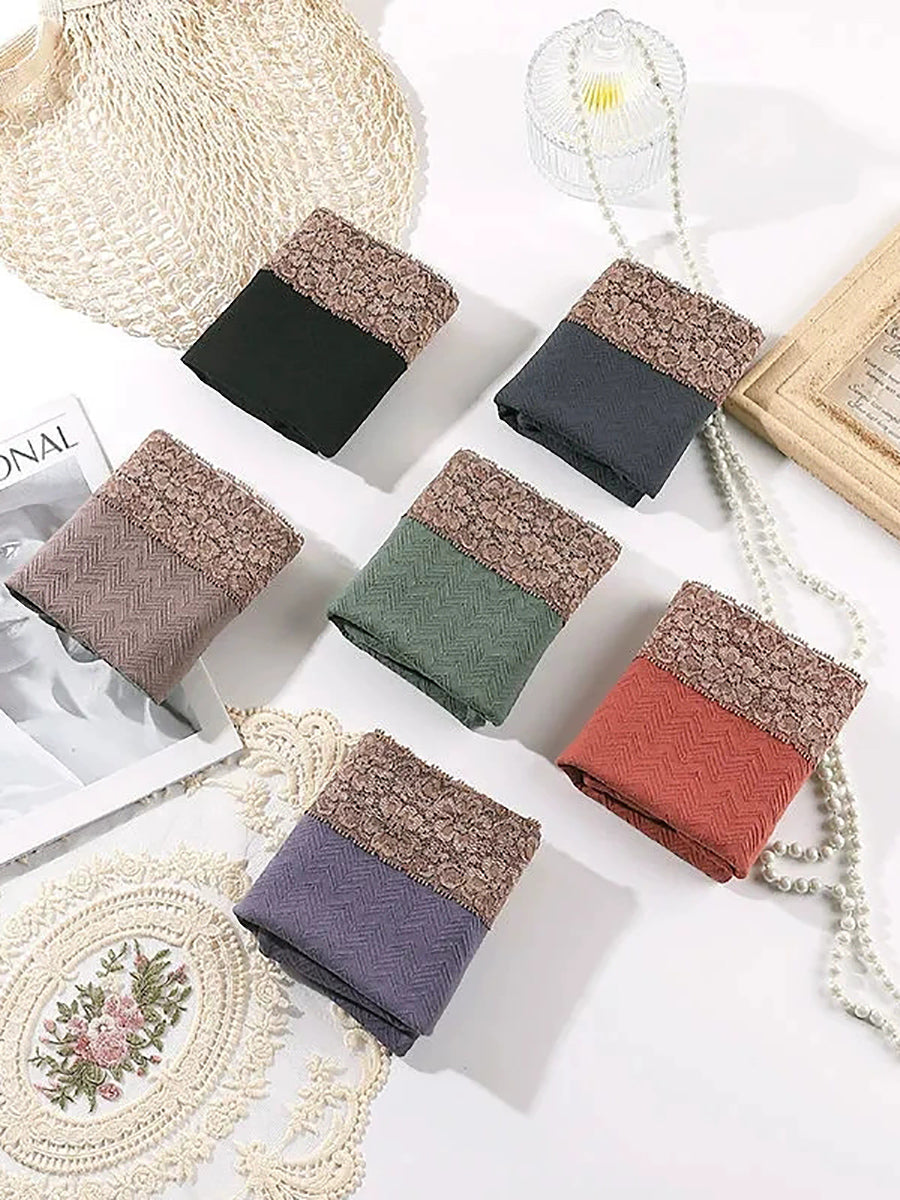 5 Pieces Women Artsy Lace Spliced High Waist Underwear