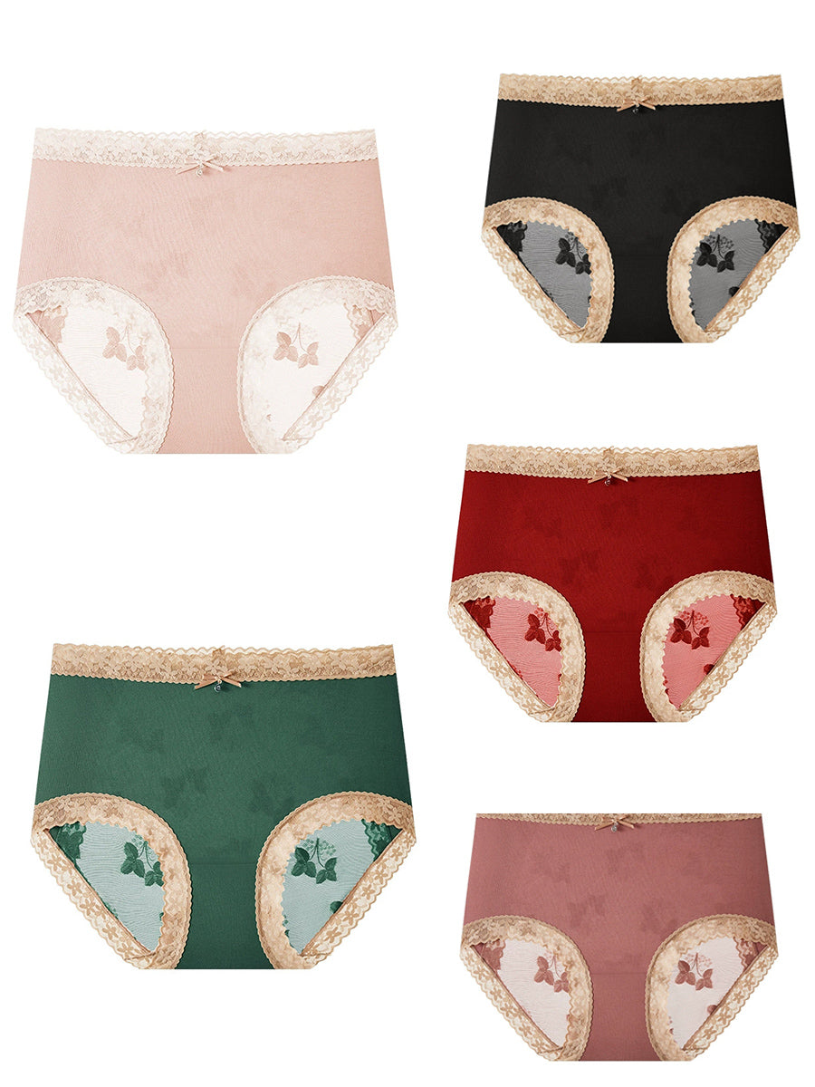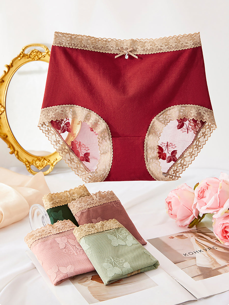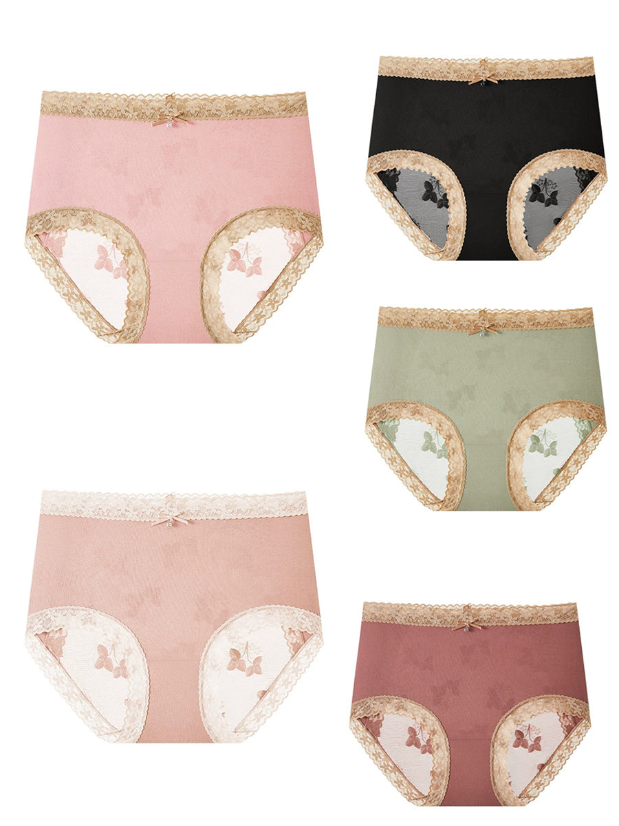 5 Pieces Women Flower Lace Spliced High Waist Underwear