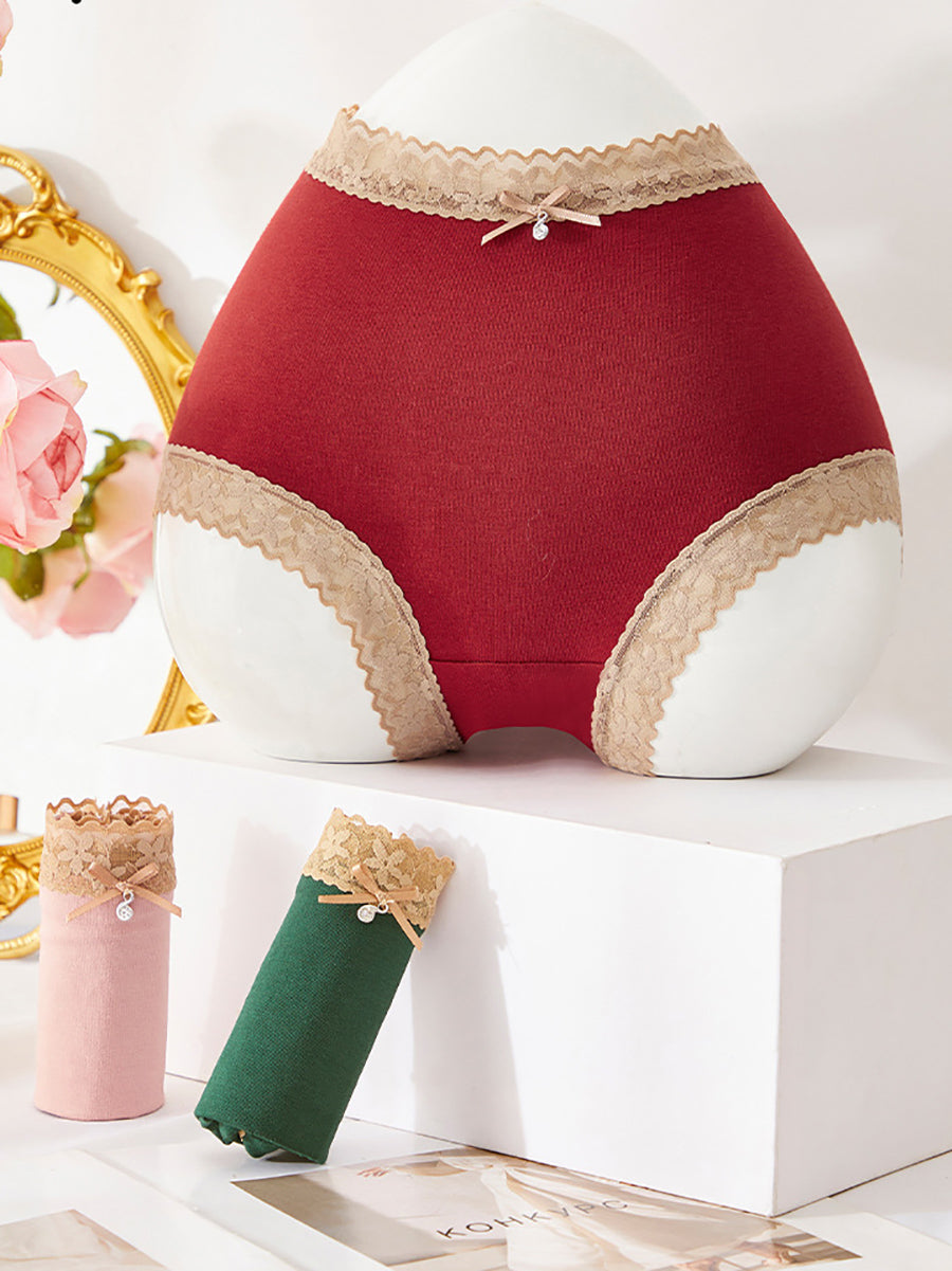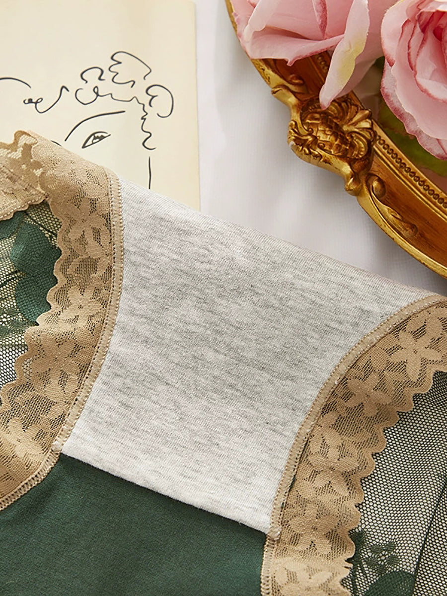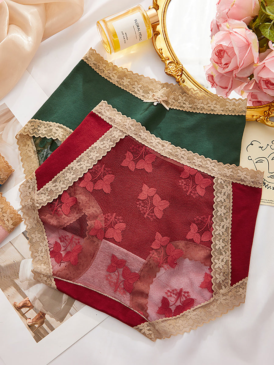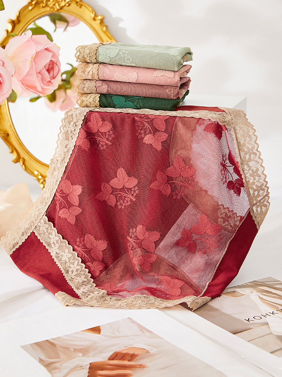 5 Pieces Women Flower Lace Spliced High Waist Underwear
