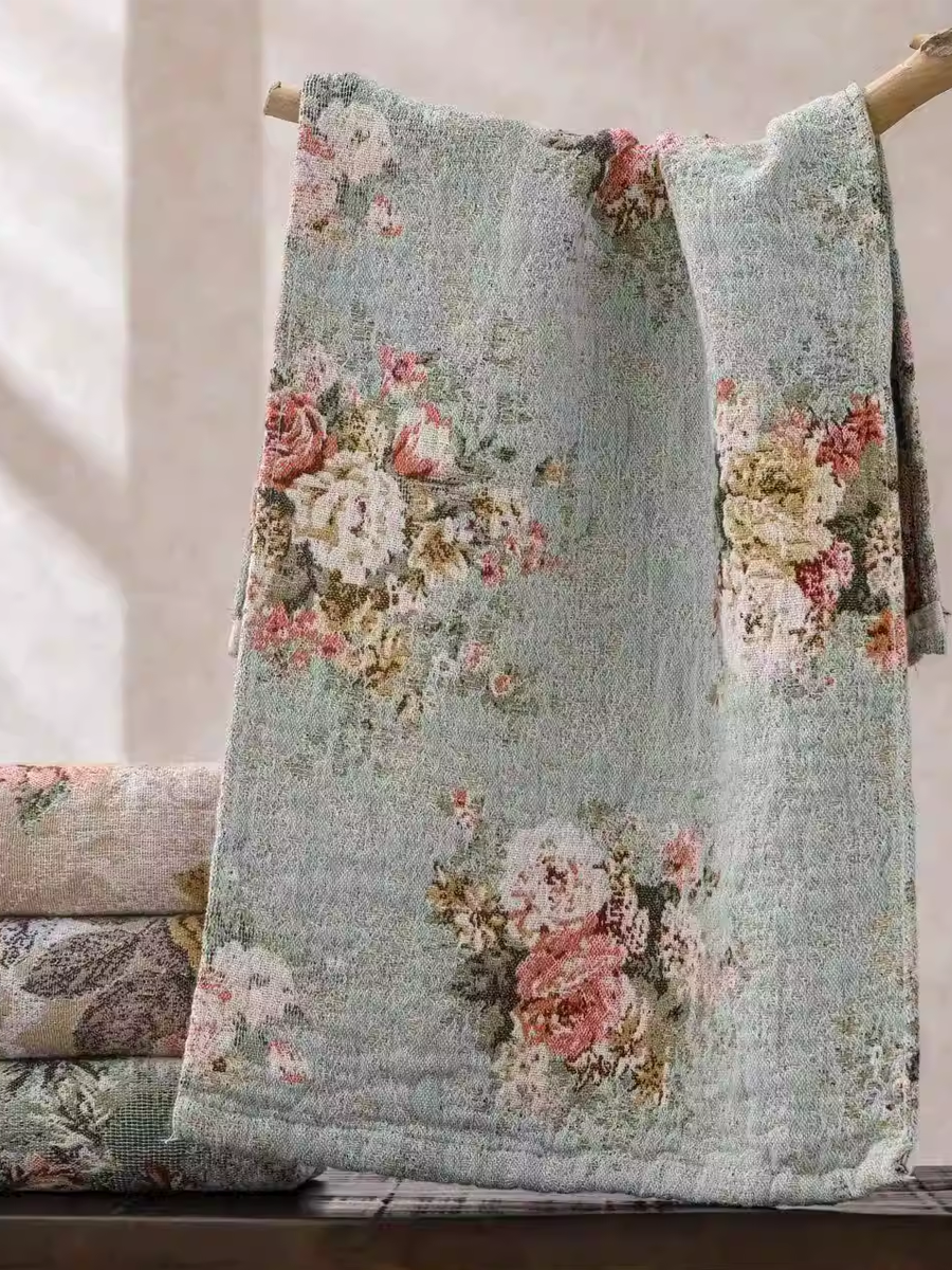 Retro Botanic Flower Jacquard Hemp Face Towel 3-Pcs Set