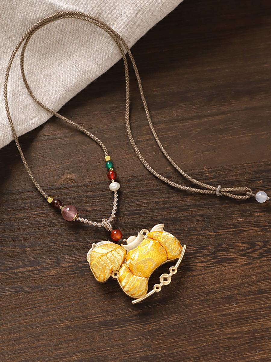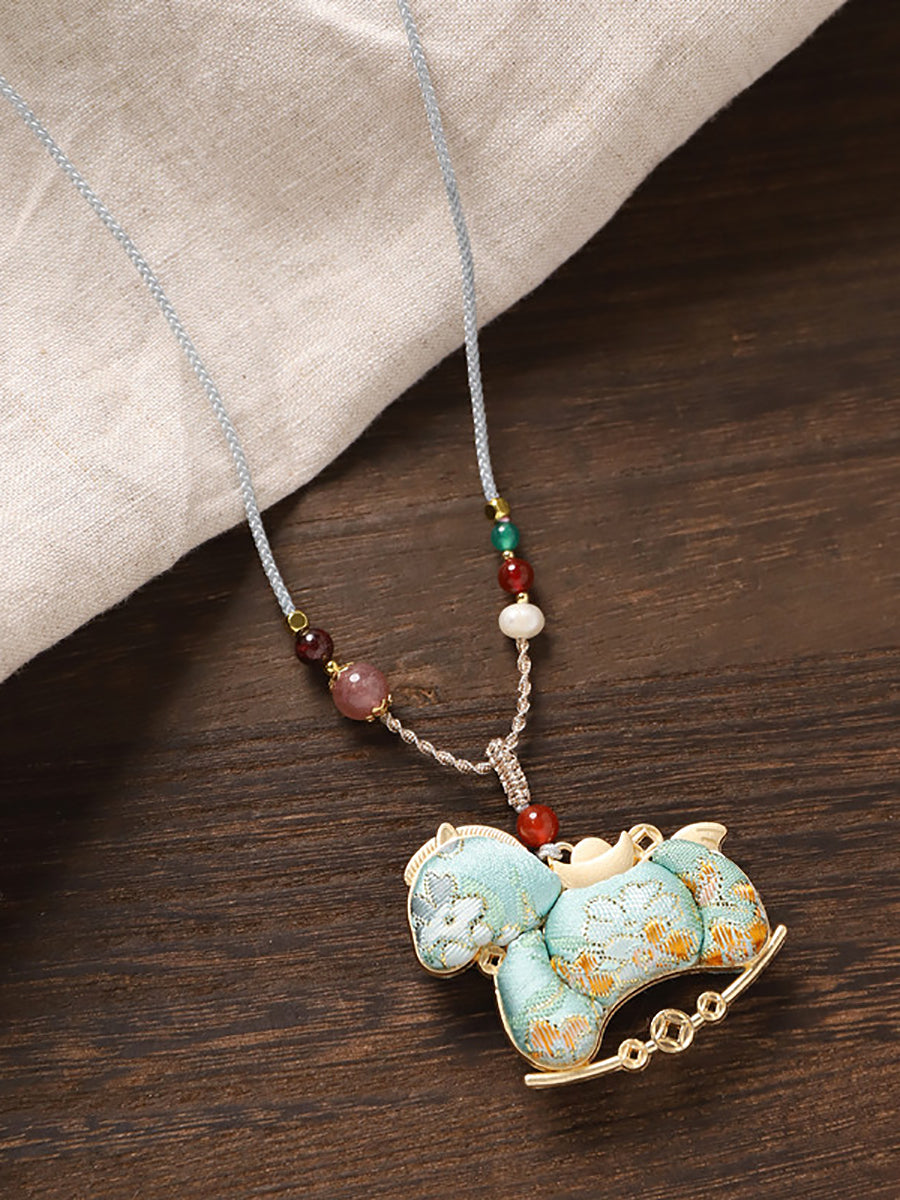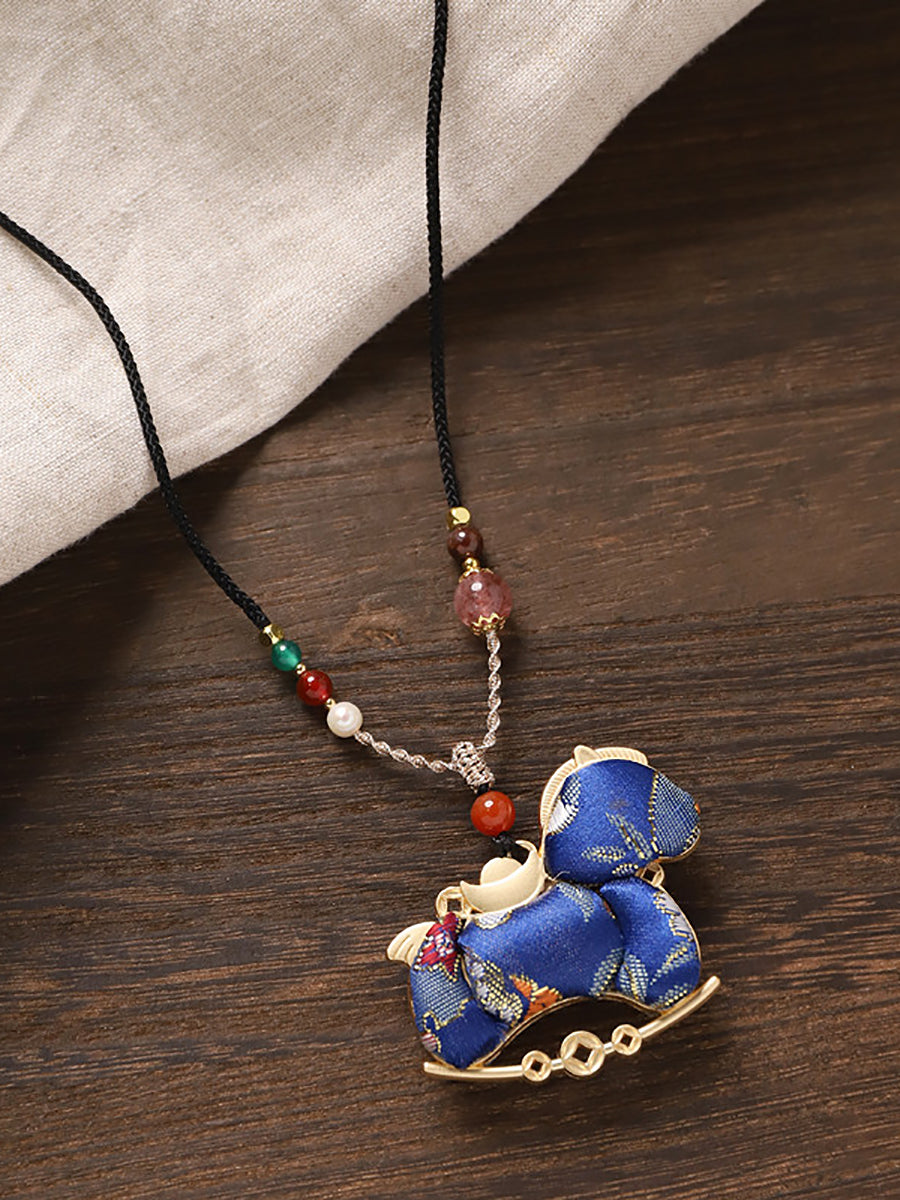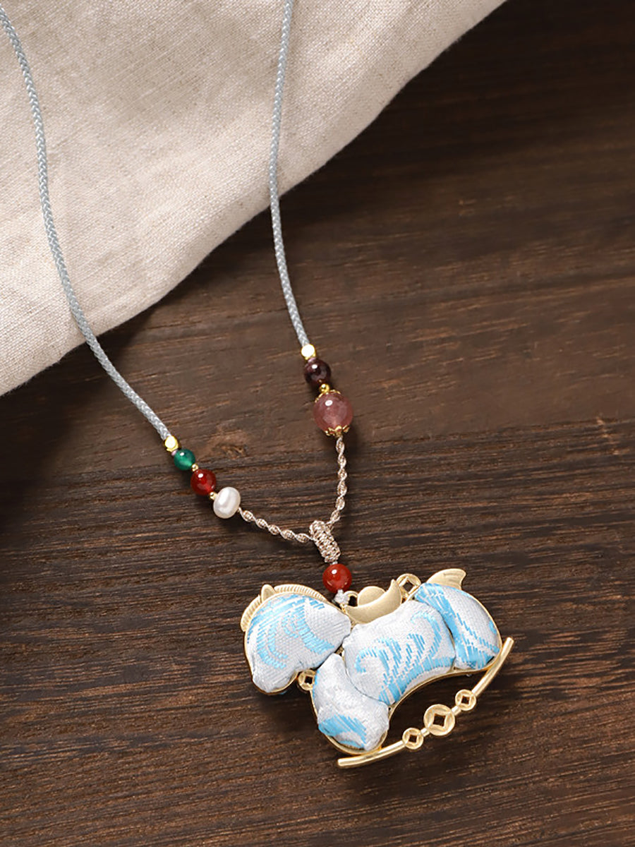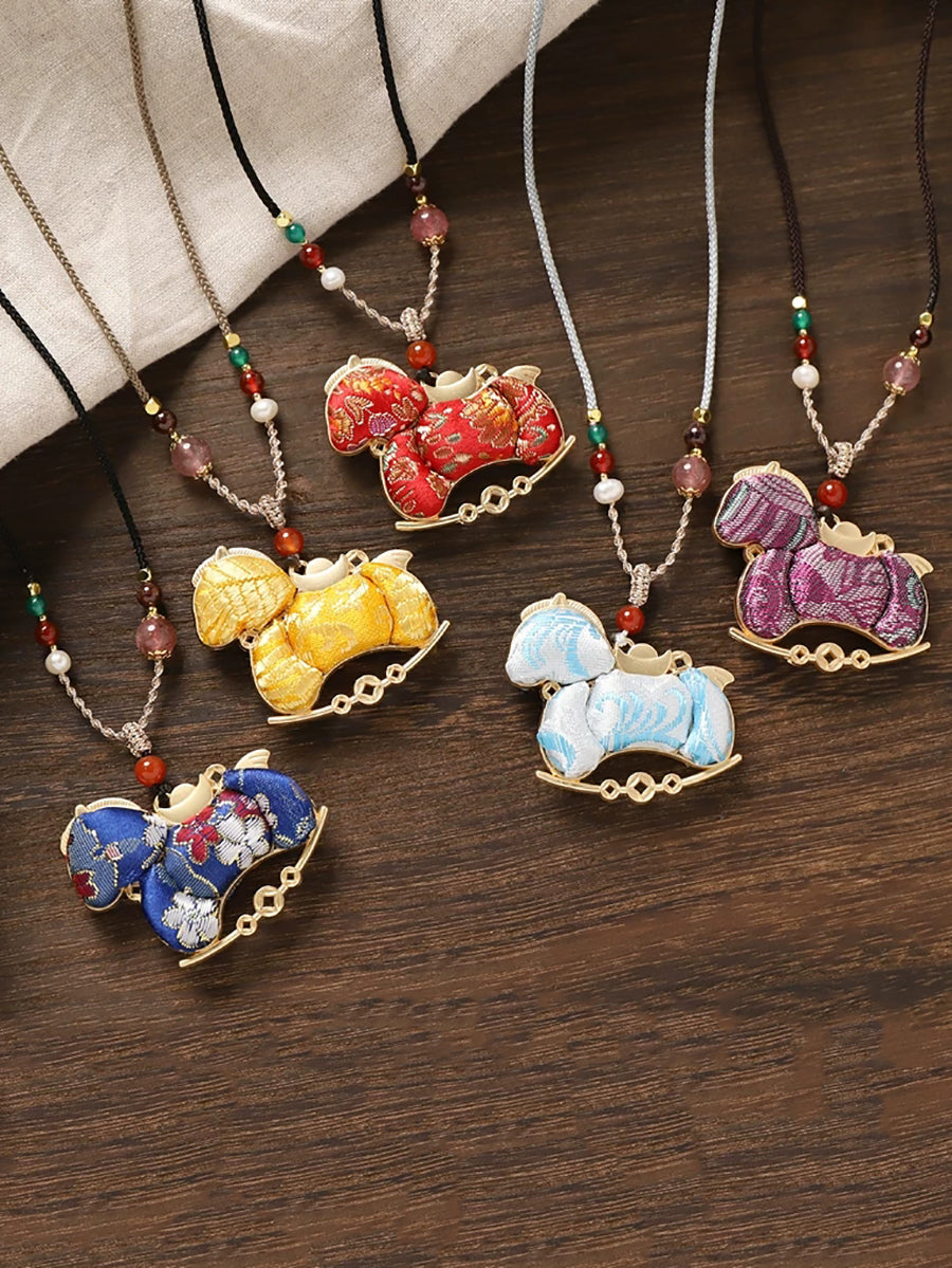 Ethnic Double-sided Brocade Horse Pendant Long Necklace