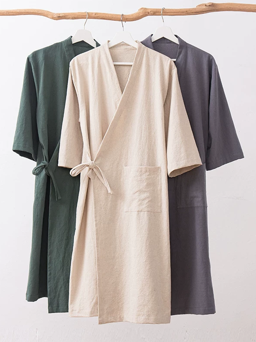 Pure Color Unisex Side-Tie Summer Bathrobe