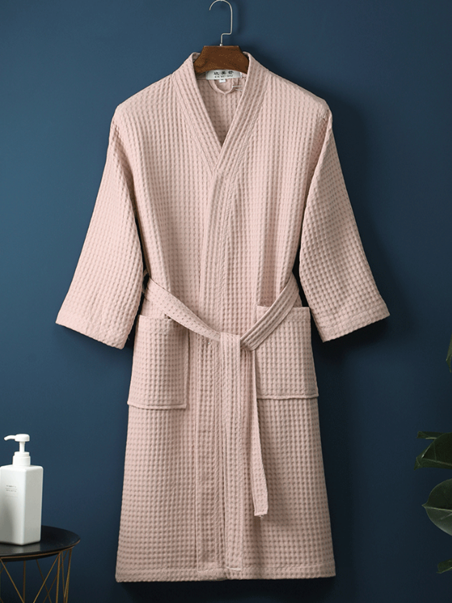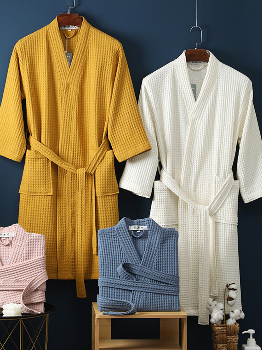 Pure Cotton Unisex Waffle Embroidery Bathrobe