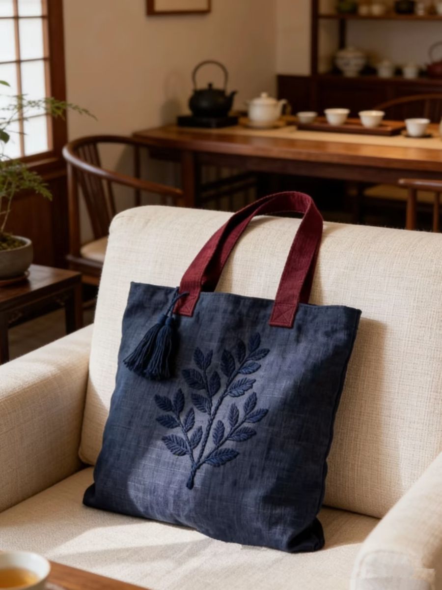 Retro Embroidered Plant Canvas Bag