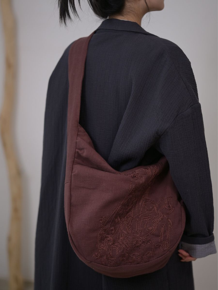 Retro Plain Color Embroidery Crossbody Bag