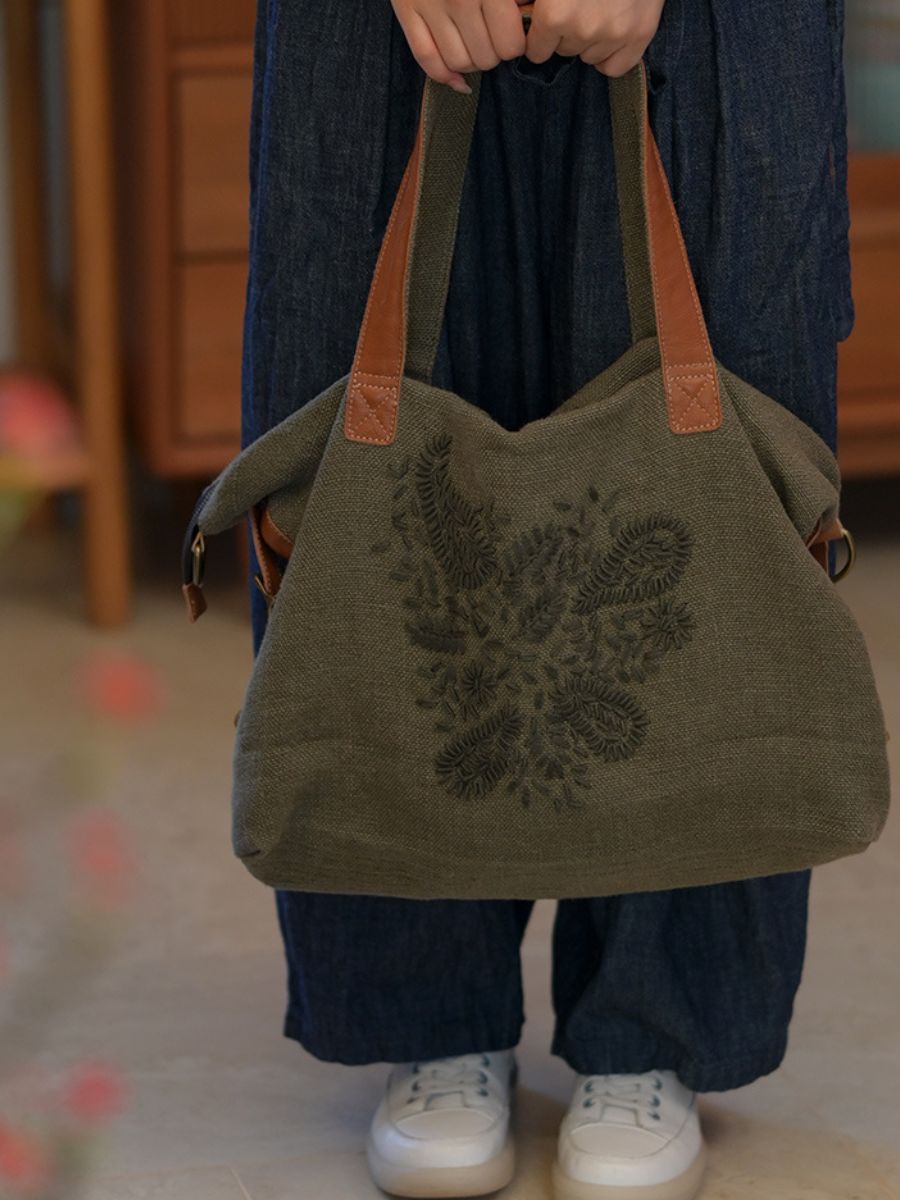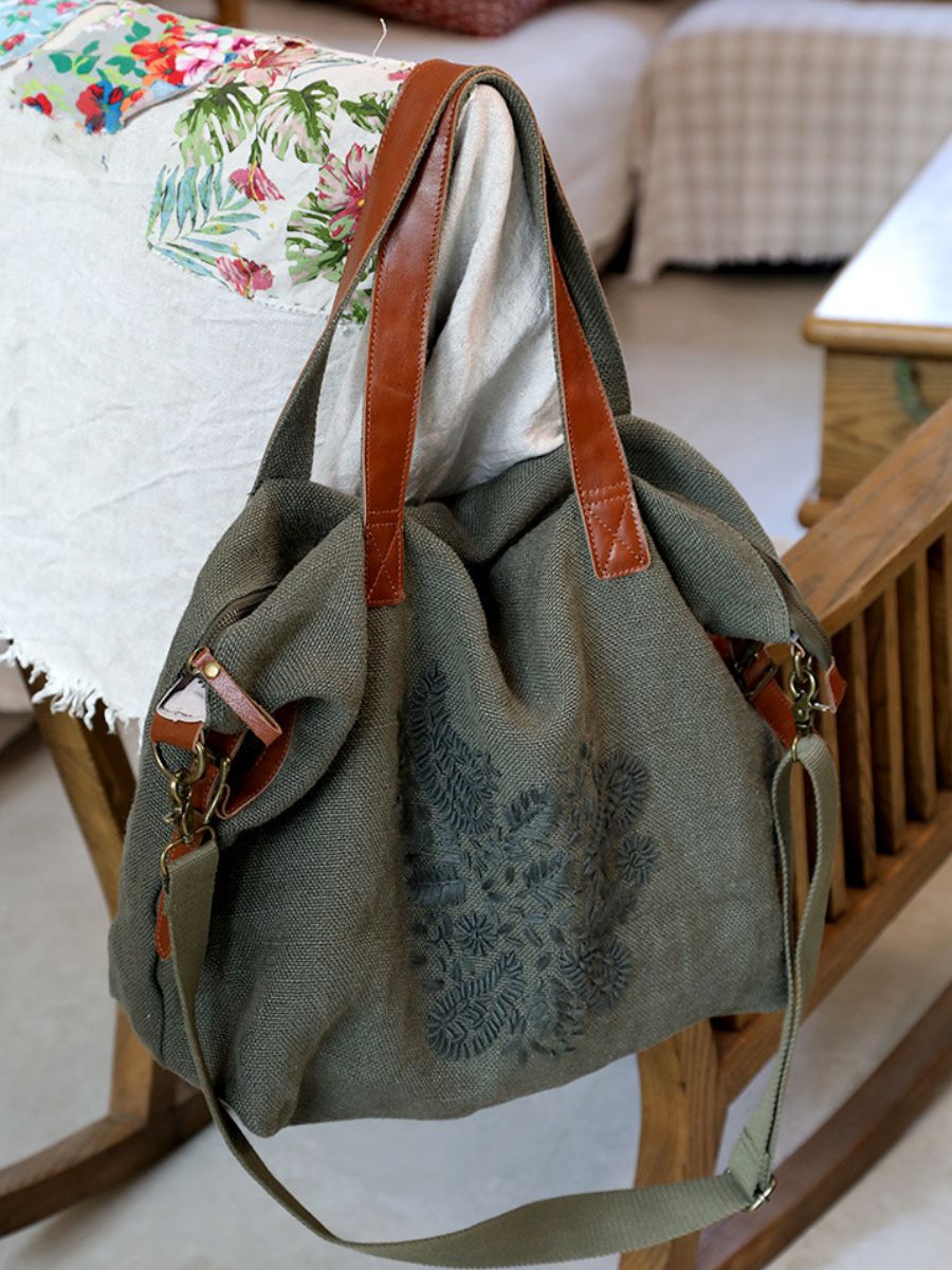 Vintage Cotton-Linen Embroidered Shoulder Bag