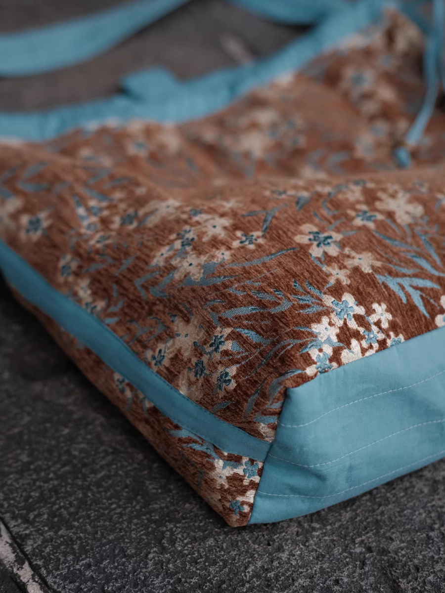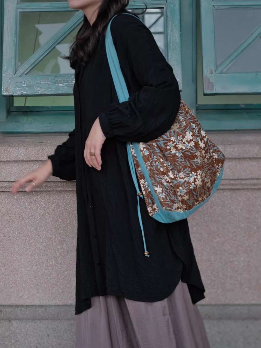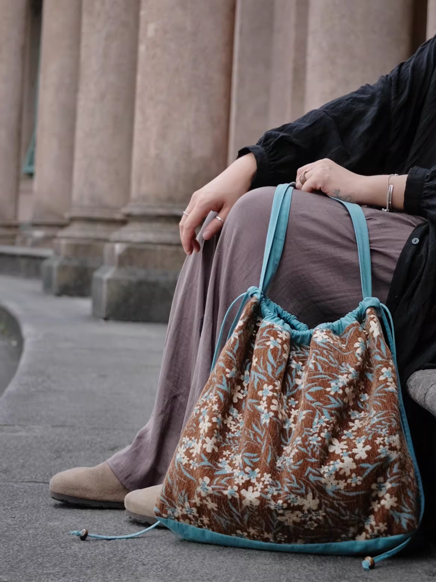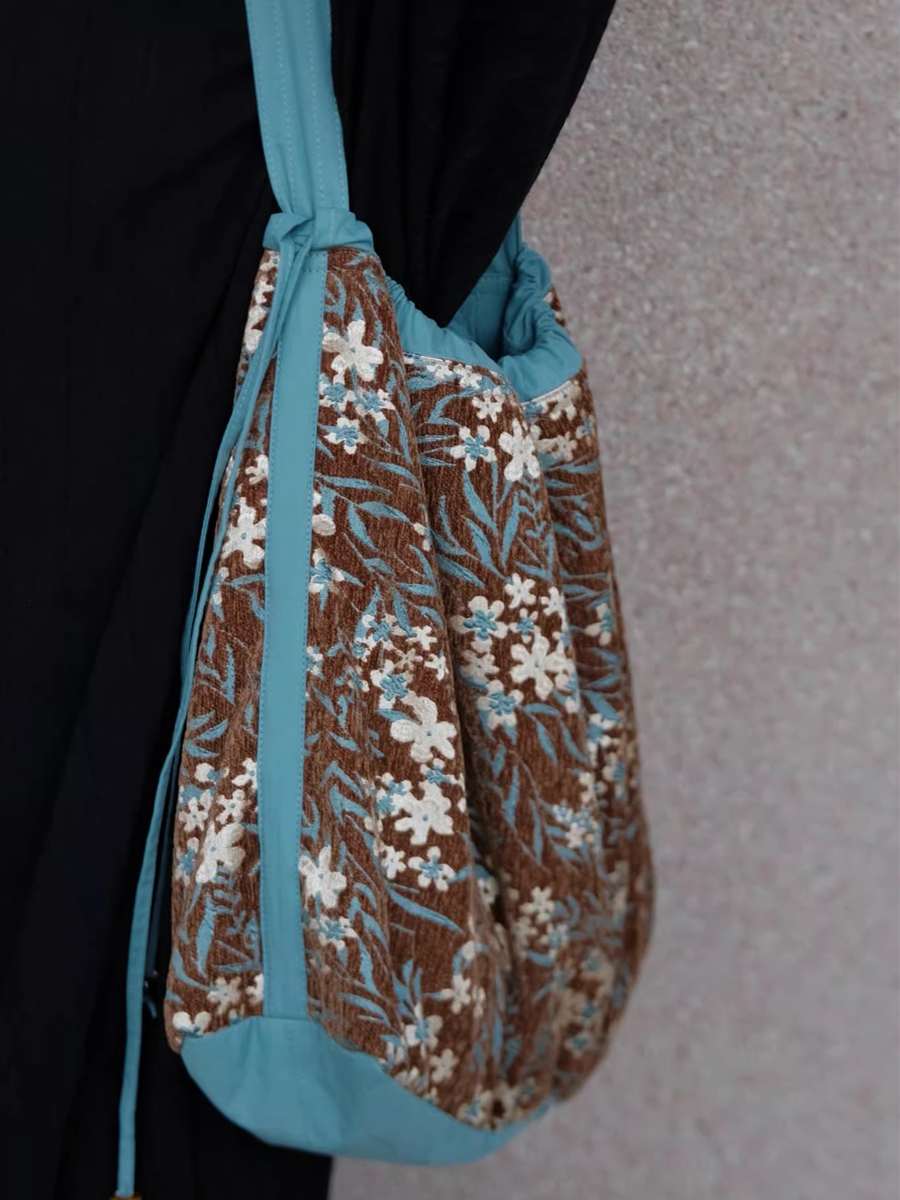 Vintage Floral Jacquard Chenille Drawstring Shoulder Bag