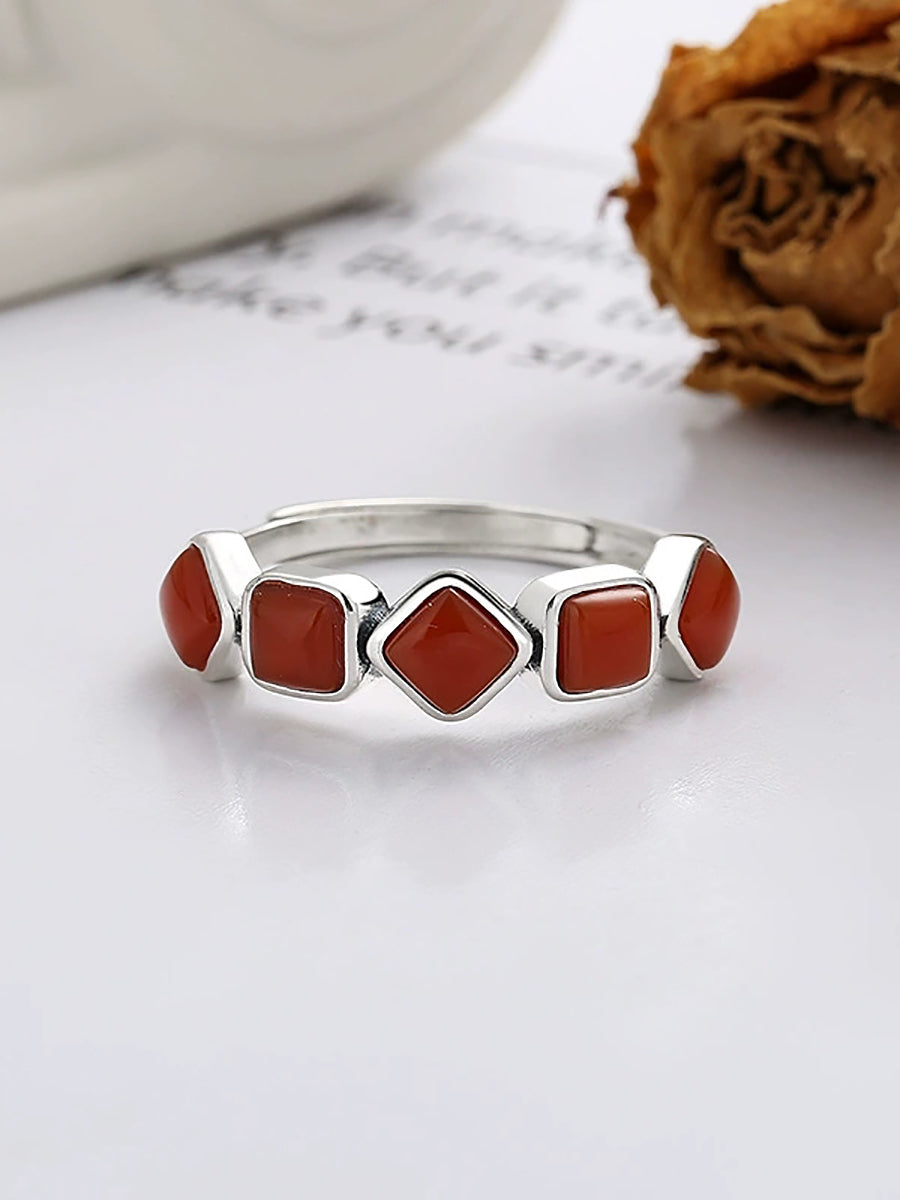 Vintage S925Silver Red Agate Adjustable Ring