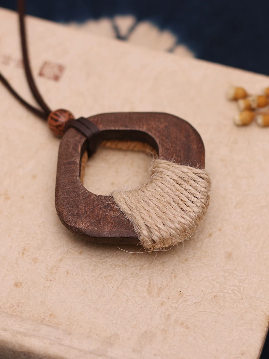 Vintage Wooden Hemp Rope Weave Sweater Necklace