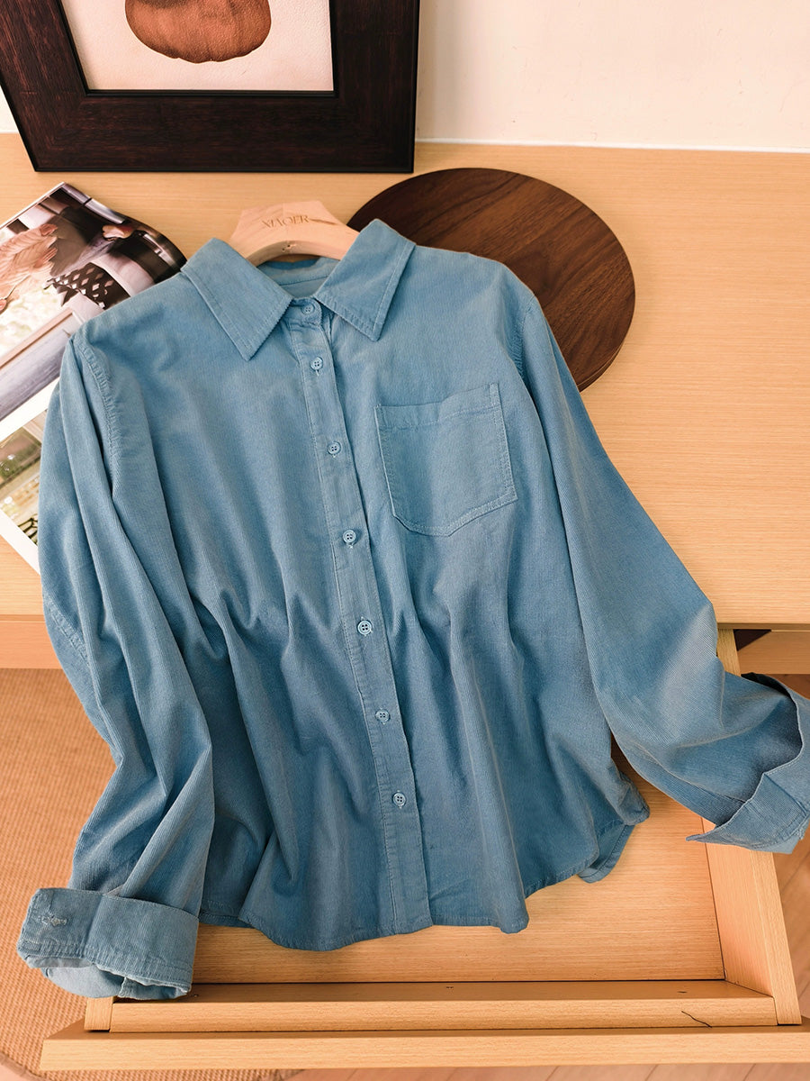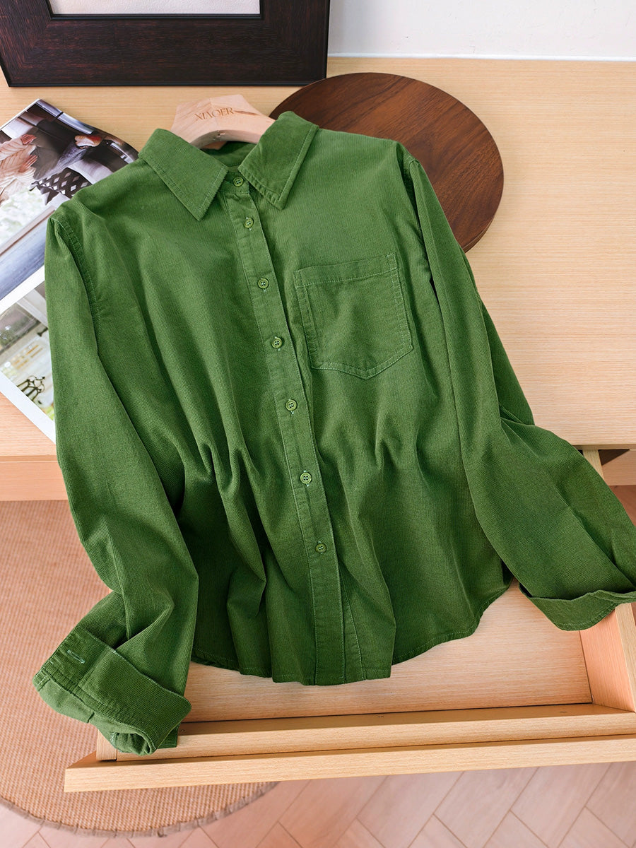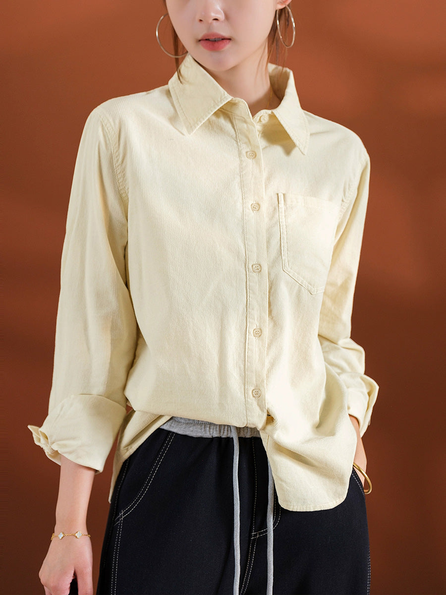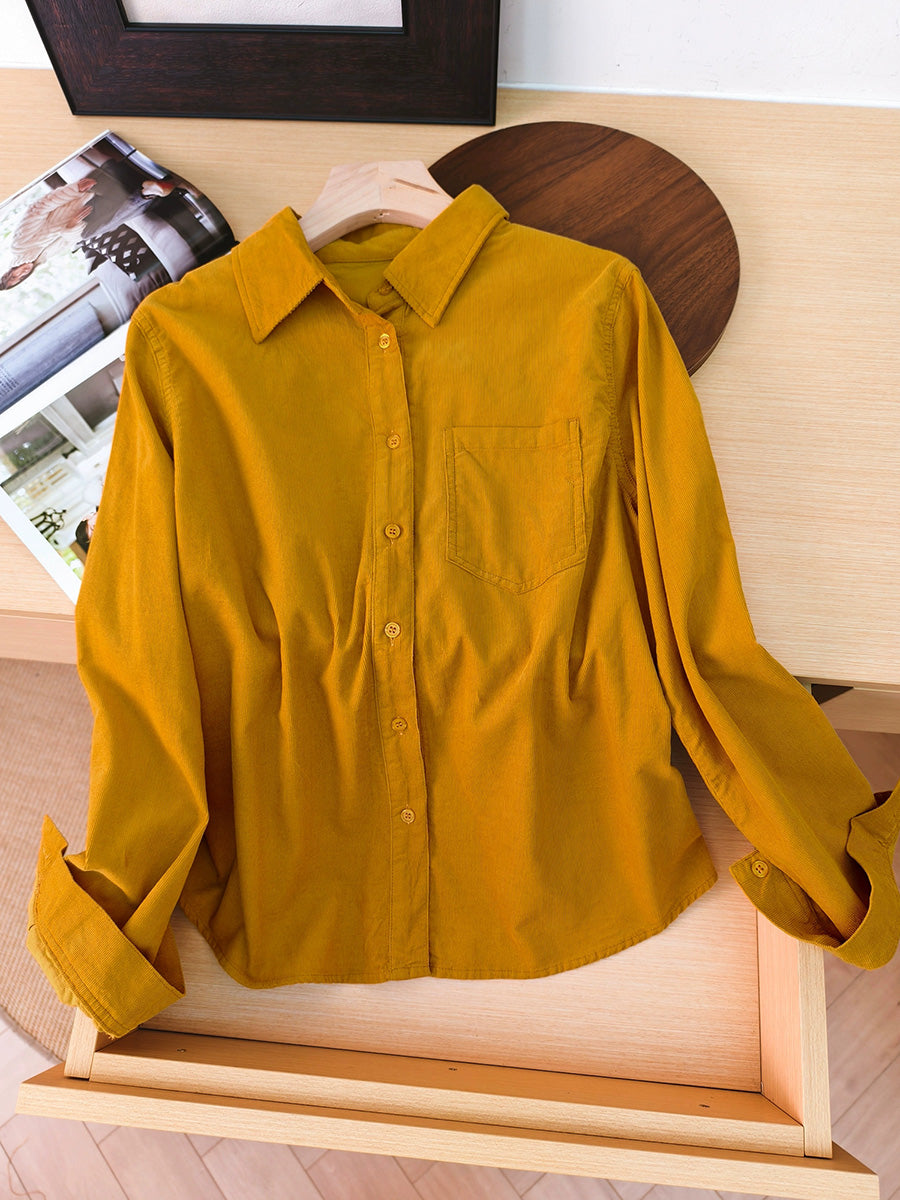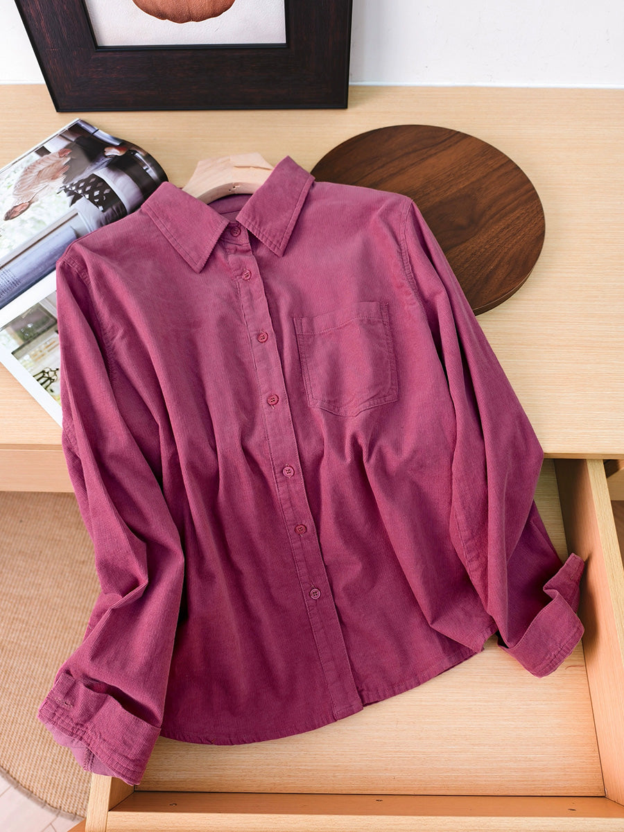 Women Artsy Autumn Pure Color Corduroy Blouse